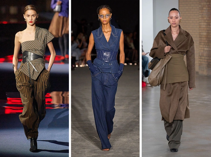 Вслед за корсетами креативные директора модных марок вернули в моду приталенный силуэт и акцент на талии, а значит к лонгсливам, рубашкам, жакетам и платьям уже следующей осенью будем обязательно добавлять широкие ремни, корсеты, фартуки и баски.