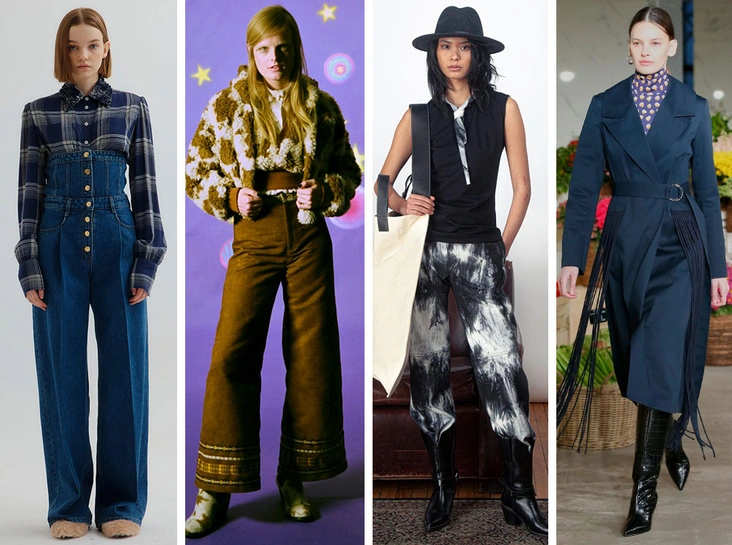 За последние несколько сезонов стиль вестерн ушел в тень, однако надолго пропасть с радаров ему не удалось, и дизайнеры вновь решили вернуться к излюбленной тематике. Новая американская эстетика оказалась довольно расслабленной, практичной и ненавязчивой. Жакет с коровьим принтом и негладкой фактурой Anna Sui, уютное вязаное пончо с бахромой Jonathan Simkhai или ковбойские ботинки Victor Li — все эти вещи легко интегрировать в различите стили, даже если эстетика ковбоев вам совсем не близка.