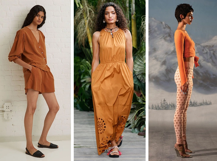 В наше время тенденции спокойно перетекают из сезона в сезон, а трендовые палитры и вовсе не имеют четкого деления на «весну и лето» и «осень и зиму». Поэтому самый что ни на есть осенний оттенок оранжевого мы теперь видим в летних коллекциях. Среди фаворитов — легкие и свободные терракотовые шорты, как у Thakoon, и макси-платье Jason Wu с вырезом и карманами.