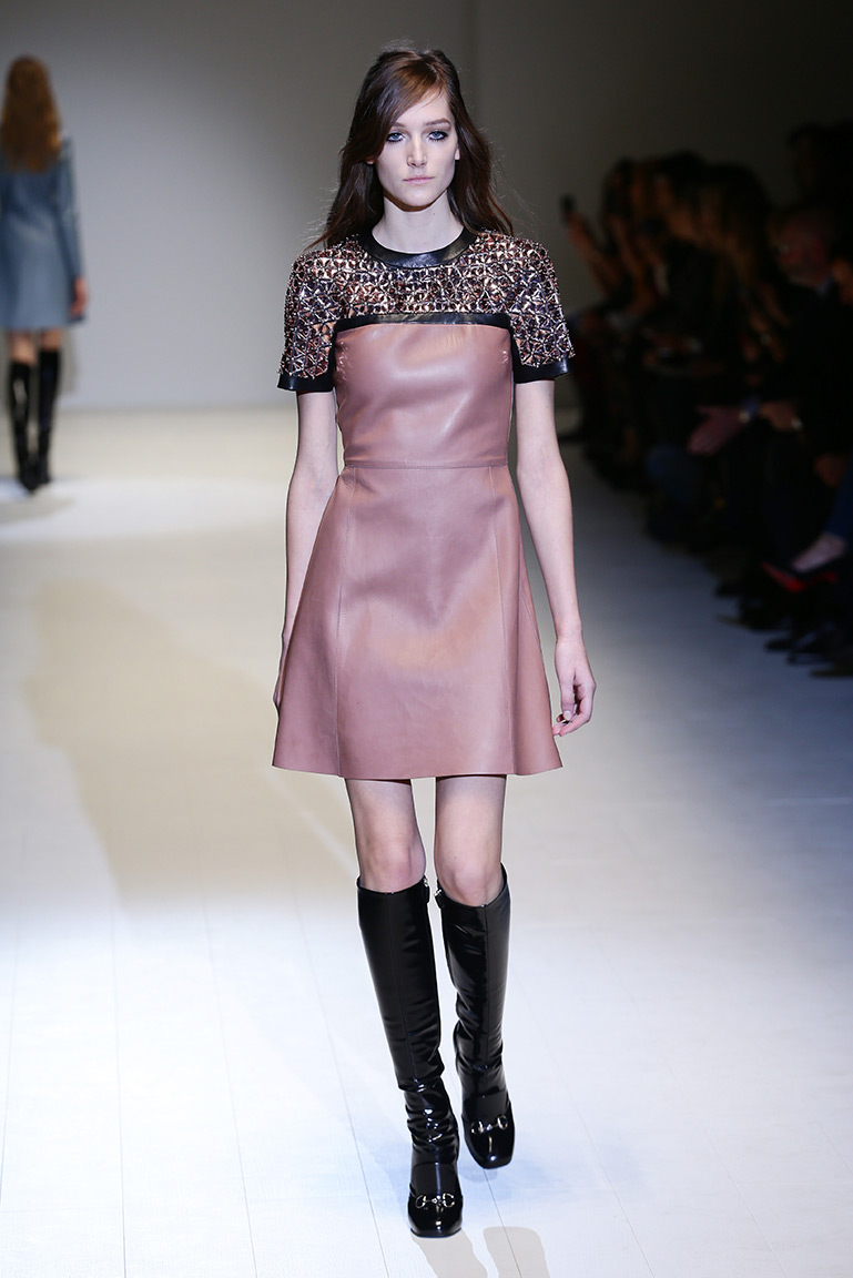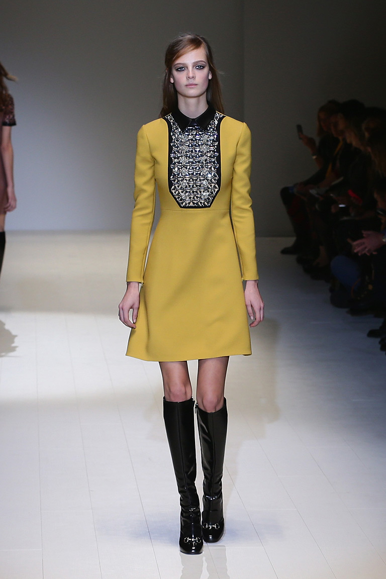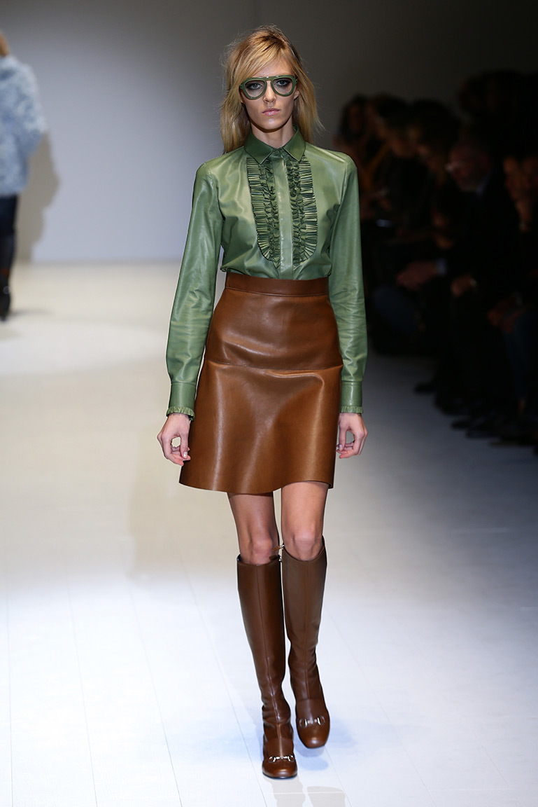«Я чувствовала потребность материализовать суть Gucci», – написала в своей программе креативный директор Модного дома Фрида Джаннини (Frida Giannini). За основу она взяла женщину, которая одевается, чтобы угодить себе, а не другим. Она нашла выход в создании одежды, которая несет в себе функциональный шик и изрядную долю соответствующего дому гламура.