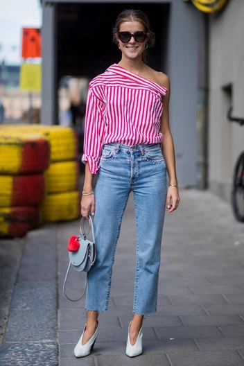 Такие джинсы отлично будут смотреться в сочетании с деловой одеждой — жакетом или пиджаком — и с обувью на плоском ходу. А если вы фанат каблуков, то с данной моделью отлично сочетаются туфли на шпильках.