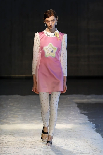 Американский дизайнер Сэнди Лянг не в первый раз использует игровые принты в своих коллекциях, так что мы не удивились, когда увидели «детский» сарафан на подиуме ее бренда. Собственно, и на поклон дизайнер вышла с дочкой на руках — так что референсы понятны. Еще один тренд — принты на футболках, которые видели на нескольких показах. Сочетаем вещи в стиле тинейджеров с джинсами и кедами для гармоничности и офисным стилем для mix&match.