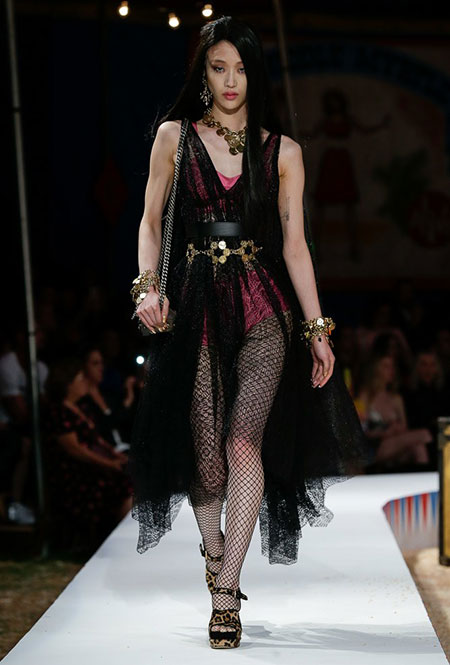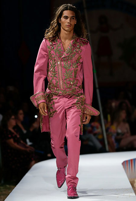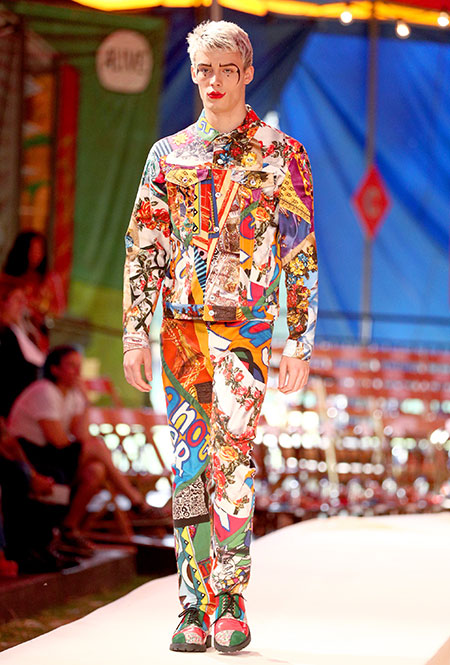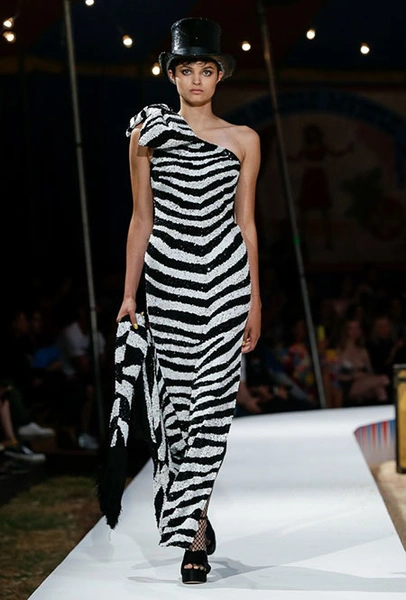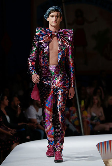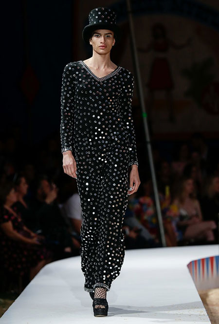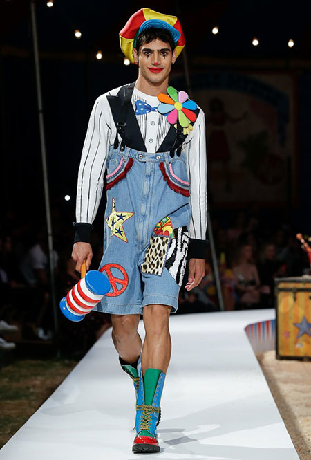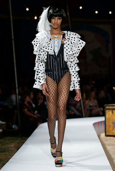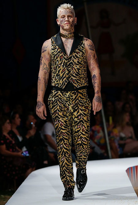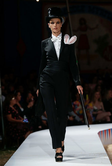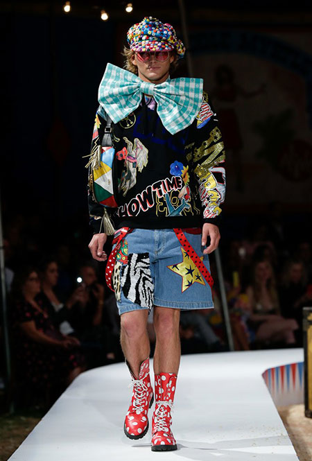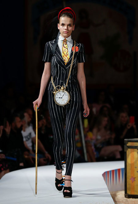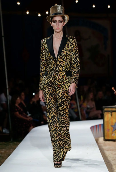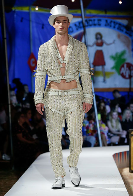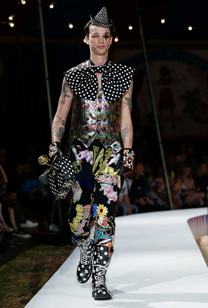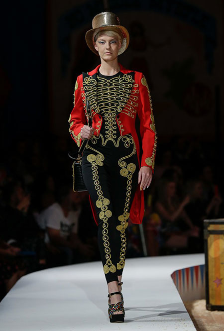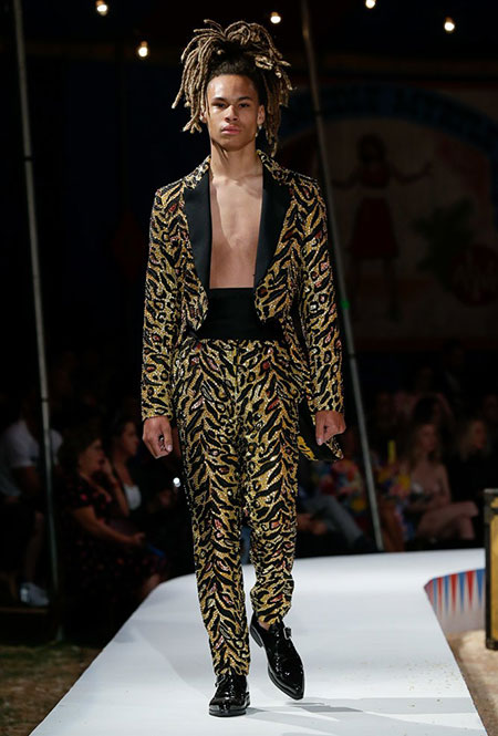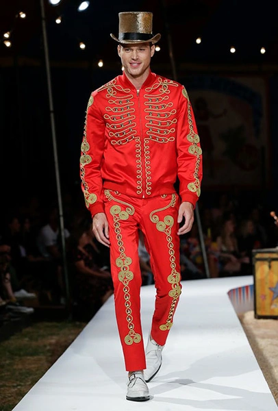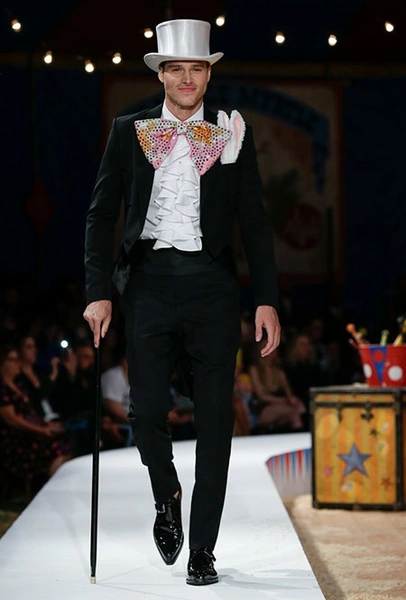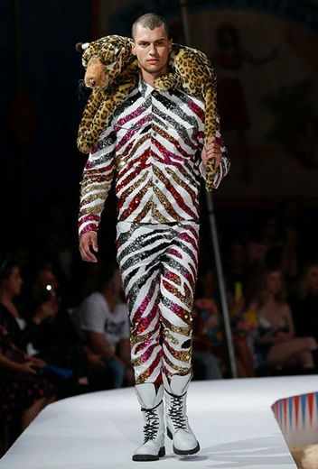 «Дамы, господа и дети всех возрастов! Добро пожаловать в цирк Moschino! – с театральными начал декламировать мужчина в черном цилиндре, выйдя на освещенную софитами арену одного из цирков в Лос-Анджелесе. - Для вас у нас – все самое потрясающее, все наиудивительнейшее и наизысканейшее…». В странном человеке, одетом в черные брюки и черный лонгслив с вышивкой как на гусарском мундире, зрители не без труда узнали креативного директора Джереми Скотта. Обычно он закрывает собственные показы, но на этот раз изменил традиции и правильно сделал: получилось эффектно.