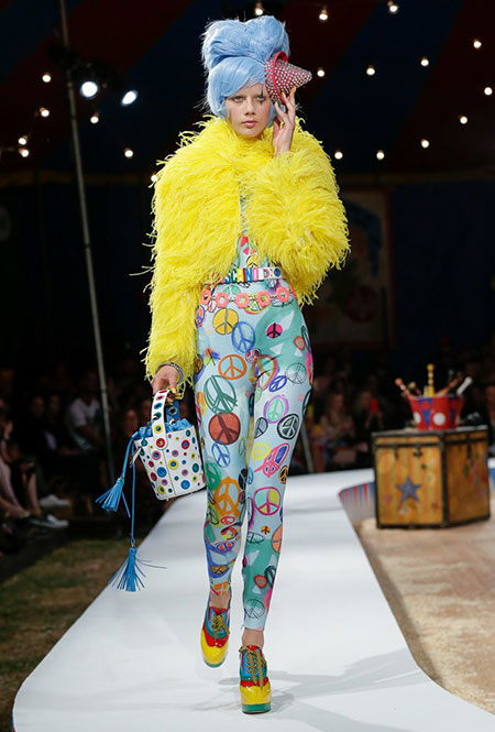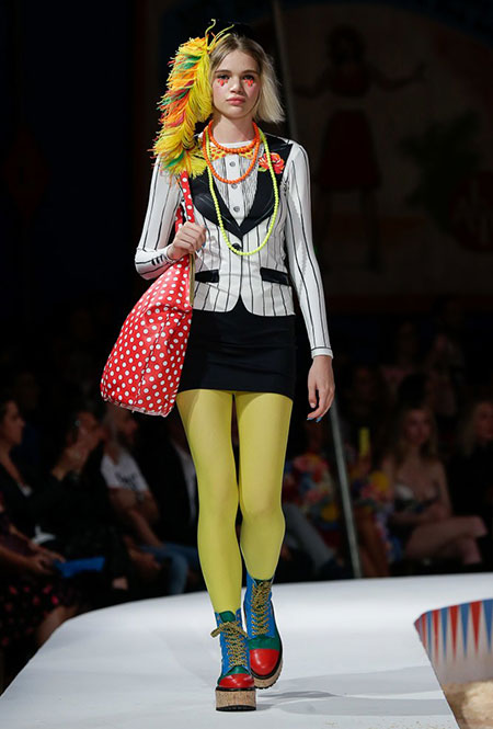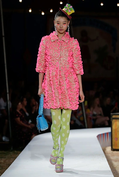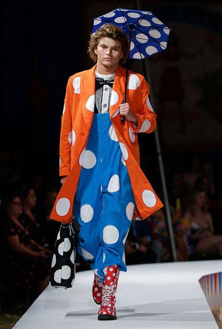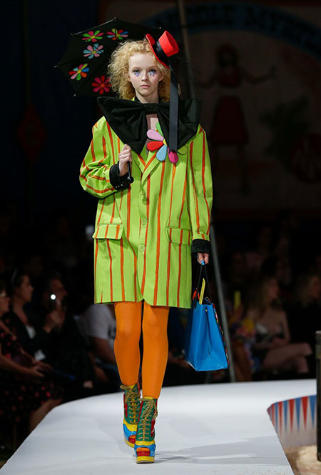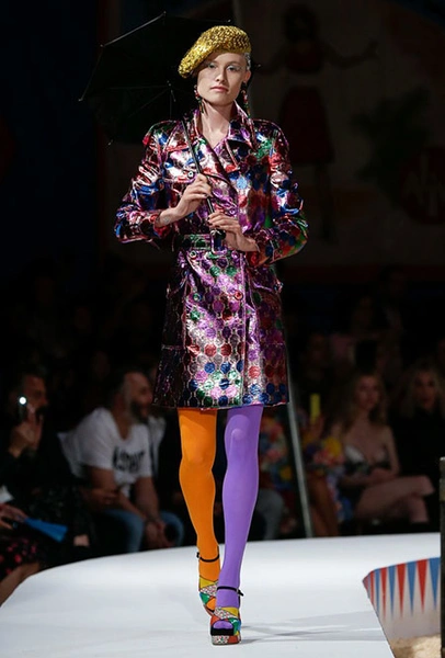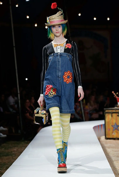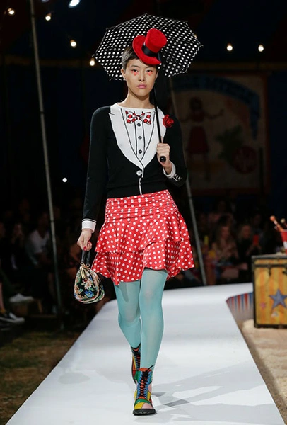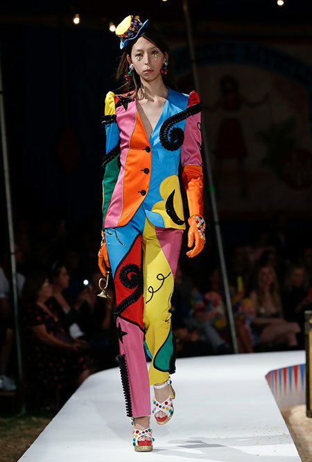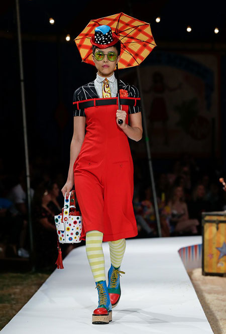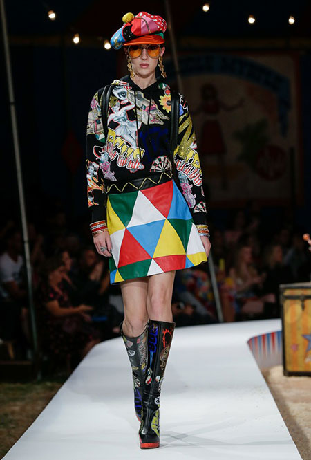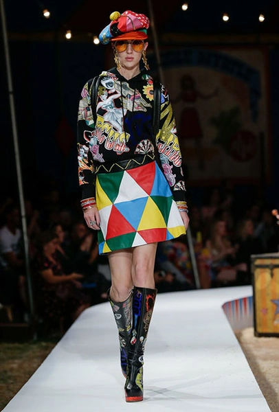 Впрочем, и без театрального открывающего выхода Скотта в духе старинных зазывал было понятно, чего ждать от коллекции Resort 2019. Шоу (в случае с Moschino это слово уместно как никогда) прошло в декорациях, воссоздающих антураж старинного бродячего цирка и называлось, вполне предсказуемо, Moschino Circus. Зрители ждали вариаций на тему трико, костюмов дрессировщиков и клоунских нарядов и их ожидания были вознаграждены с лихвой.