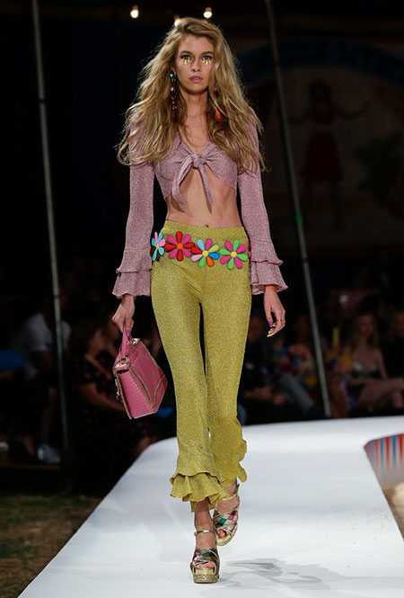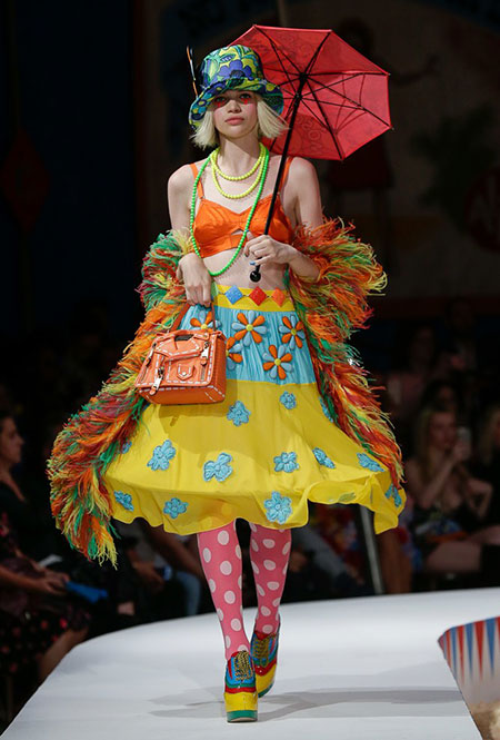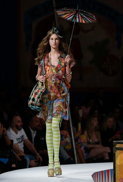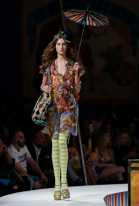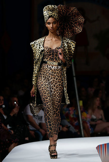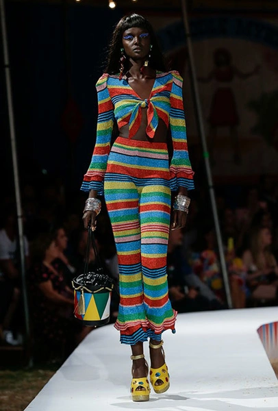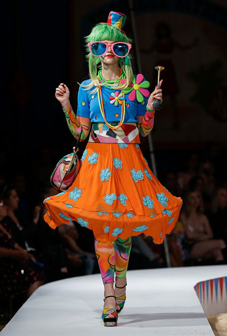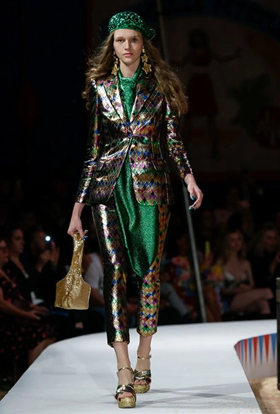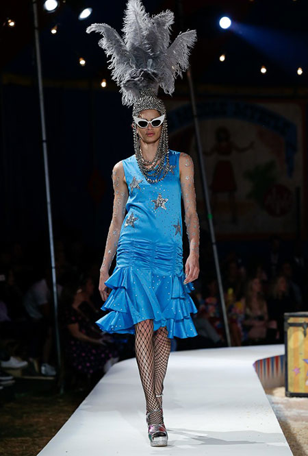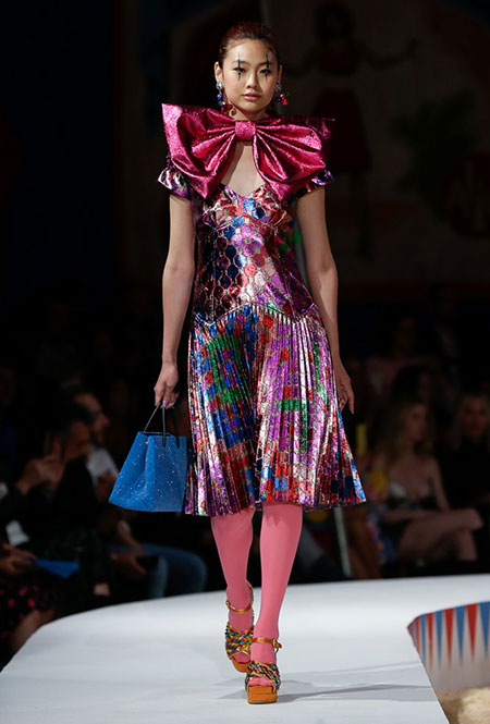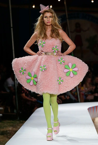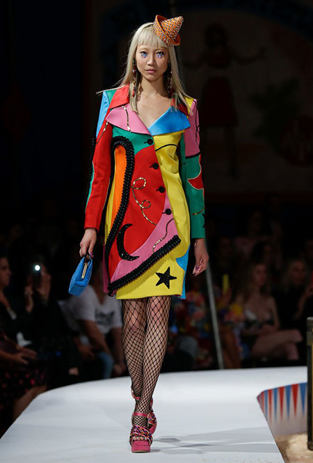 Впрочем, и без театрального открывающего выхода Скотта в духе старинных зазывал было понятно, чего ждать от коллекции Resort 2019. Шоу (в случае с Moschino это слово уместно как никогда) прошло в декорациях, воссоздающих антураж старинного бродячего цирка и называлось, вполне предсказуемо, Moschino Circus. Зрители ждали вариаций на тему трико, костюмов дрессировщиков и клоунских нарядов и их ожидания были вознаграждены с лихвой.