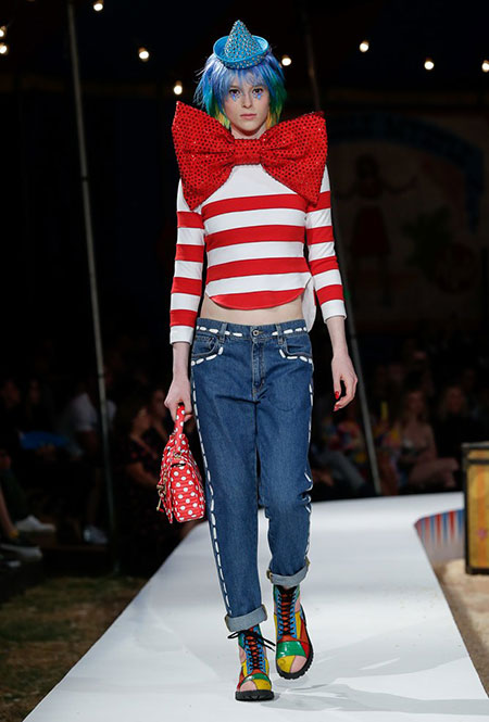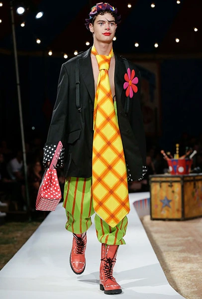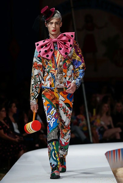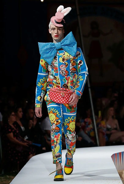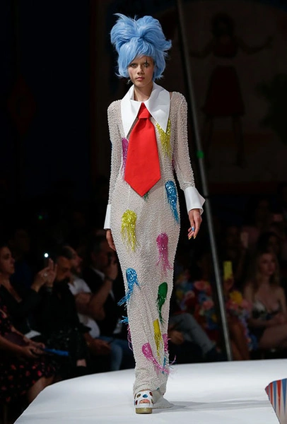 Если у коллекции был мудборд (а он, скорее всего, был), там, вероятно, можно было найти не только фото цирковых афиш начала ХХ века, но и обрывки комиксов про Спайдермена и Супермена, старинные черно-белые фото, снимки все той же Грейс Джонс и кадры из фильмов «Алиса в стране чудес» и «Чарли и шоколадная фабрика». Одним словом, Resort 2019 – квинтессенция всего стиля Moschino времен Джереми Скотта – смесь сказки, иронии над современностью и ретро-образов, пропущенных через призму видения человека, заставшего «кислотные» 90-е. Скотт никогда не воспринимал моду всерьез и круизный показ - своего рода заявление: «Все мы внутри большого цирка, так будем же веселиться как дети!». Что ж, нам такой подход нравится. В конце концов, еще барон Мюнгхаузен утверждал, что величайшие глупости в мире делаются с серьезным выражением лица.