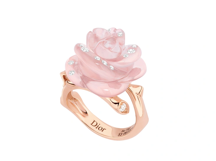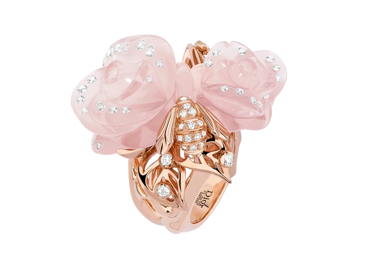Наконец, в линейке Rose Dior Pré Catelan, главной особенностью которой стали вручную вырезанные из декоративных камней бутоны роз, теперь можно будет найти сразу два новых чокера, несколько колец с драгоценными пчелками, а также особый подарок от Виктуар де Кастеллан – подвеска и два кольца из розового золота, бриллиантов, имитирующих капли росы, и кварца нежного пудрового цвета.