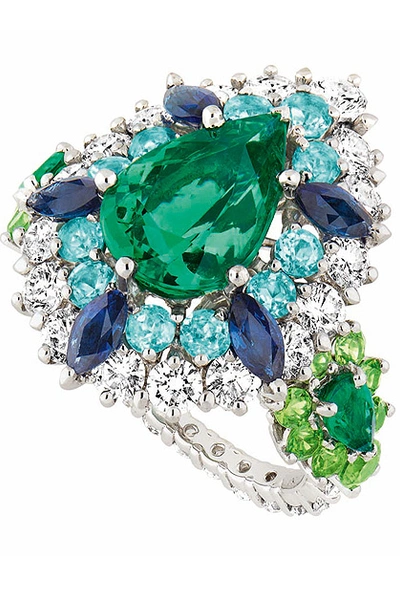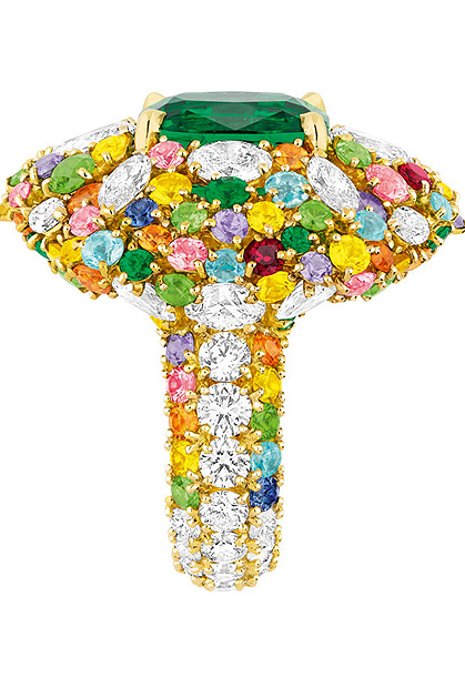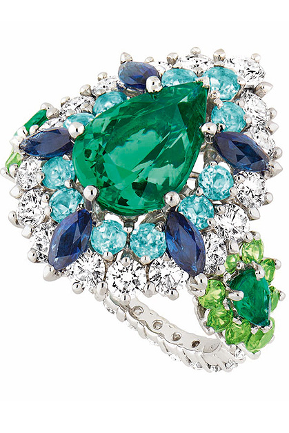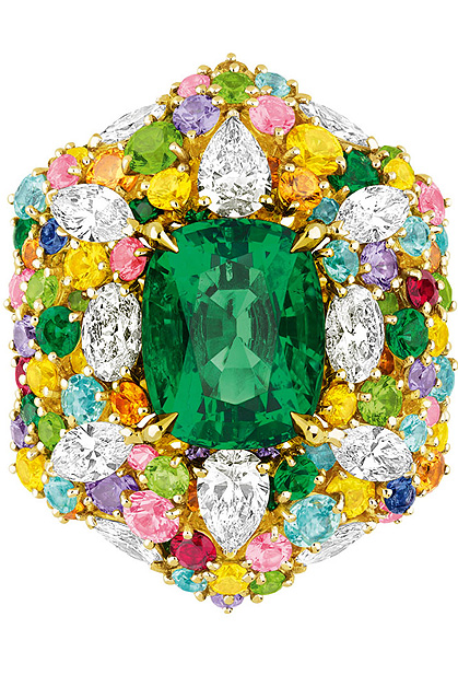 Коллекция Cher Dior Виктуар де Кастеллан – это жизнерадостное послание месье Диору. Кристиан Диор (Christian Dior) обожал сочные краски травы и цветущего луга. Ювелирная коллекция Cher Dior – об этой страсти. Виктуар обыгрывает мотивы природы с помощью камней всех мастей и соцветий – розовые, желтые, синие и фиолетовые сапфиры, рубины, бриллианты, гранаты и бразильские неоново-бирюзовые турмалины Параиба. Камни проделали двухлетний путь с Юго-Востока Америки и из Гонконга, а потом прошли экспертизу в Париже. Только после этого Кастеллан определила их дальнейшую судьбу в качестве драгоценностей Dior.