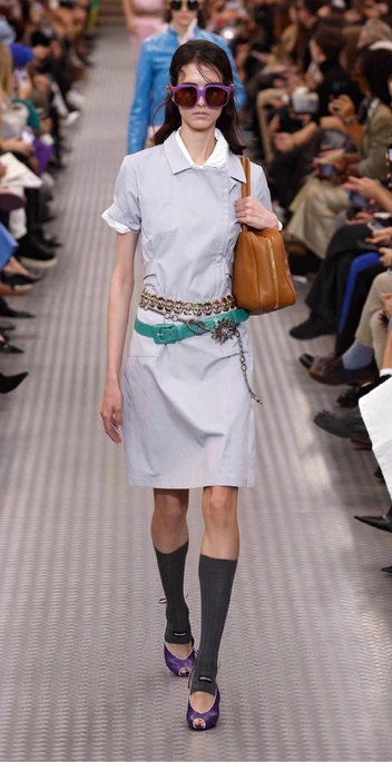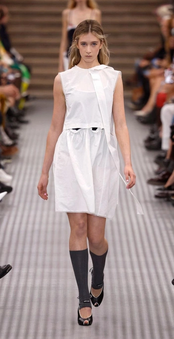 Балет-кор тоже не отпускает, поэтому весной 2025 года в топе трендов вновь будут балетки. А также все вариации эстетики балерин: например, ношение обуви с трикотажными гетрами по колено. Такой вариант с peep toe представили трендсеттеры Miu Miu: на подиуме модели сочетали это комбо с платьями и юбками, что подходит для офиса и не только (читайте также: Никаких каблуков: балетки снова становятся самой модной обувью).