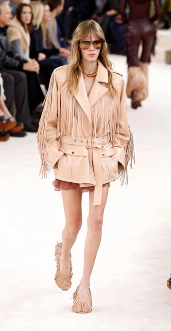Трудами Чемены Камали бохо перевоплотился из временного кора в фундаментальный стиль, прочно занявший место в нашем гардеробе. Поэтому и туфли peep toe рекомендуем купить в богемной эстетике — например, с бахромой, как на одном из последних показов. Если же не хочется привлекать такое сильное внимание к обуви, то рассмотрите другие интерпретации бохо: например, туфли в замше оттенка камел (читайте также: Платье в стиле Chloe, замшевые казаки и еще 4 вещи в стиле бохо-шик, которые нужны вам в 2025 году).