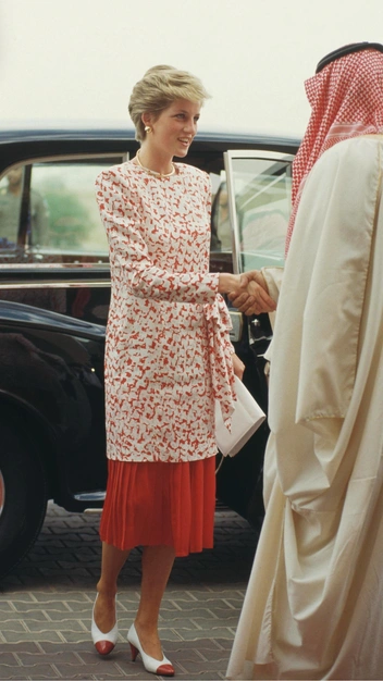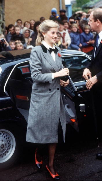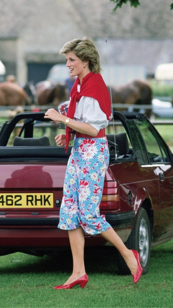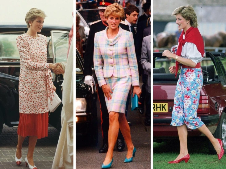 Сама же Диана Спенсер всегда подбирала туфли к наряду, они были продолжением юбки и платья. Так, однажды принцессы надела белоснежную юбку в красную вертикальную полоску и дополнила публичный выход такой же обувью. А на клиновидный каблук монаршие особы часто надевали специальную набойку, чтобы он не застревал в траве.