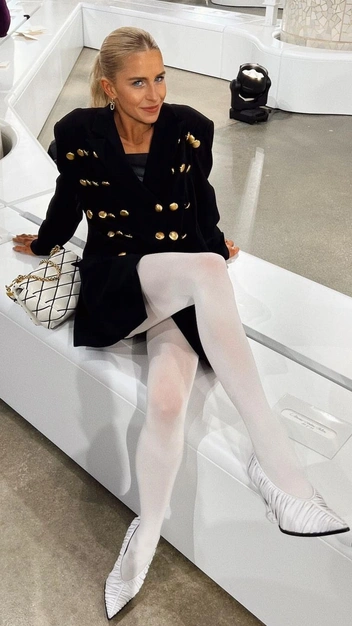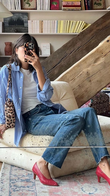 С чем носить такую обувь? Современные модные девушки предпочитают сделать акцент на туфлях, а вот образ выбрать более лаконичным и минималистичным. Например, француженка Жанна Дамас выбрала красную пару, как у принцессы Дианы, и подобрала ее к лаконичным синим джинсам, белой футболке и рубашке. А фэнш-инфлюенсер Каролина Даур дополнила трендовыми туфлями белоснежные колготки и вечерний удлиненный жакет.