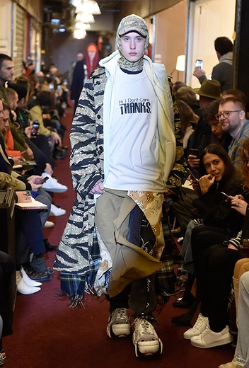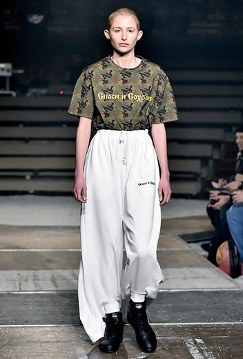 Важная тема в творчестве этих дизайнеров – модные цитаты из 90-х годов. В случае с Гвасалией это, в первую очередь, все те же отсылки к стилю Мартина Марджелы. Или копирование культовых для того десятилетия вещей, вроде толстовок с фото из «Титаника».С Рубчинским все сложнее. Он выводит на подиум парней до боли похожих на «гопников» из спальных районов и тем самым наступает на больную мозоль всем, кто пережил тяжелое пост-перестроечное время в бывшем СССР. У нас коротко стриженных юношей с окраин боялись, да и вообще они олицетворяли всю тревожность и беспросветность окружающей действительности. Отсюда нелюбовь к Гоше многих наших соотечественников.