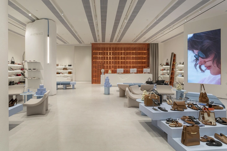 18 июня в торговом центре «Авиапарк» открылся обновленный флагманский магазин EKONIKA. Интерьер выполнен в новой, но уже визуально знакомой по другим флагманам бренда дизайн-концепции. Максимально открытый вход с крупноформатным LED экраном, подиум из синего бетона с мягкими сиденьями для примерки, минималистичные полки по периметру и хаотично расставленные по залу белоснежные каменные глыбы создают не только яркий и запоминающийся образ, но и исключают стереотипные планировочные решения торгового пространства. А залитая янтарным светом витрина со стеллажами придает интерьеру теплоту и отделяет зал от подсобной зоны.