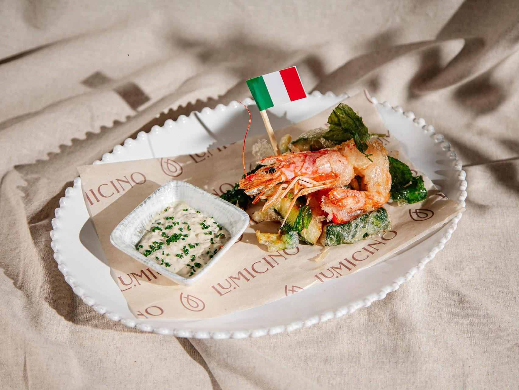В Lumicino рассказывают, что сет — своего рода гастрономическое мини-путешествие. В качестве аперитива предлагают коктейль Россини, затем сет устриц с трио соусов, летний фритто мисто с овощами в хрустящем рисовом кляре без глютена. А на десерт лимонный тирамису с цитрусовым конфитюром из апельсина и кумквата, дополненный шоколадной картой гастрономического путешествия.