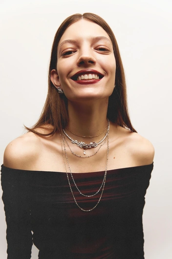 Удивительным образом ту же нежность и в то же время массивность (и даже некую дерзость) вмещает бренд Mozi J. Он точно посвящен всем, кто не равнодушен к рэп-культуре. Цепи с увесистыми звеньями, коллаборации с музыкантами (в результате которых уже каждому хочется погромче сделать музыкальный бит) и кастомные украшения, дизайн которых не ограничен ничем. Полет фантазии и эксперименты — верные спутники процесса создания.