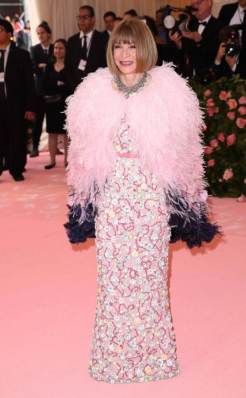 Met Gala 2019 — тот самый, на котором Джаред Лето пришел с собственной головой в руках — был посвящен китчу. Бал был полон ярких и необычных образов, однако одним из самых запоминающимся на нем оказался наряд руки Джорджо Армани. В тот день дань маэстро решила отдать сама Анна Винтур. Она вышла в платье, полностью расшитом кристаллами, и накидке из розовых страусиных перьев.