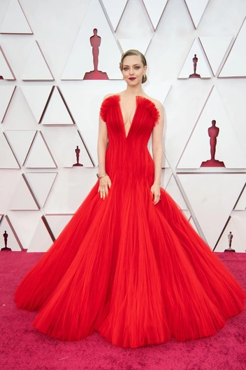 Джорджо Армани славится облегающими образами, которые идеально подчеркивают фигуру, а также искусной вышивкой. Однако кутюрье способен создать и нечто совершенно непохоже на остальные свои работы. Так произошло, например, с платьем Аманды Сейфрид, в котором она украсила красную дорожку «Оскара» в 2021-м.