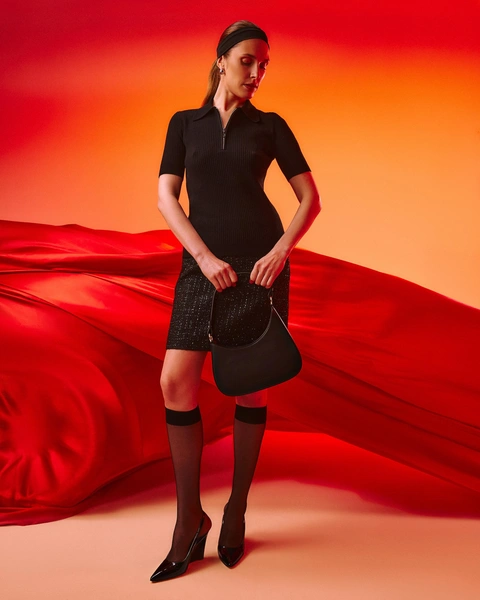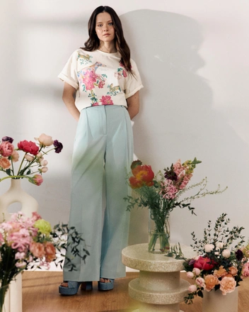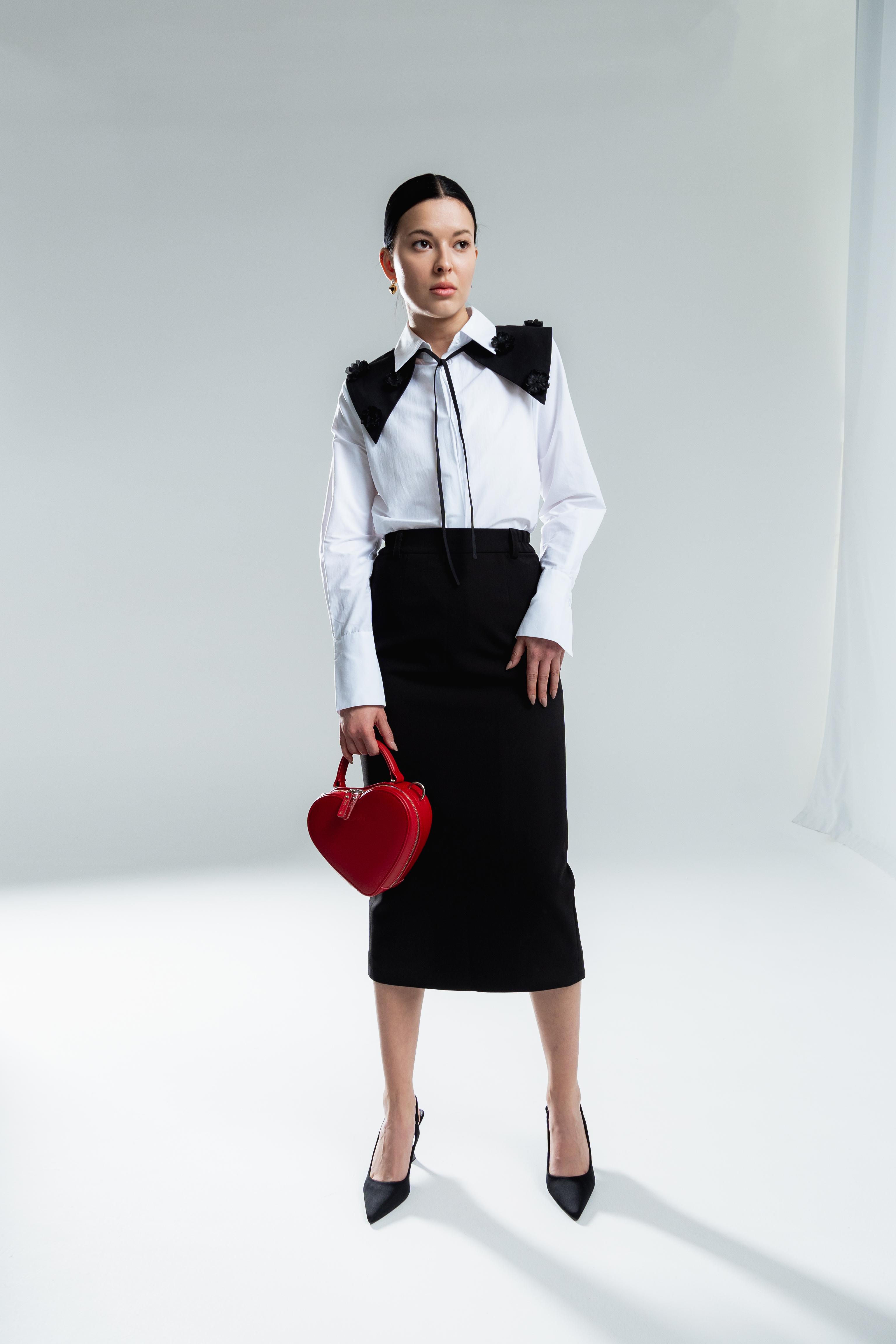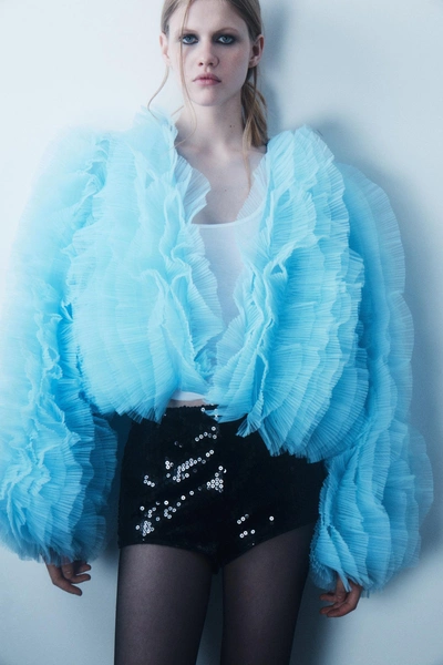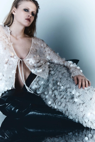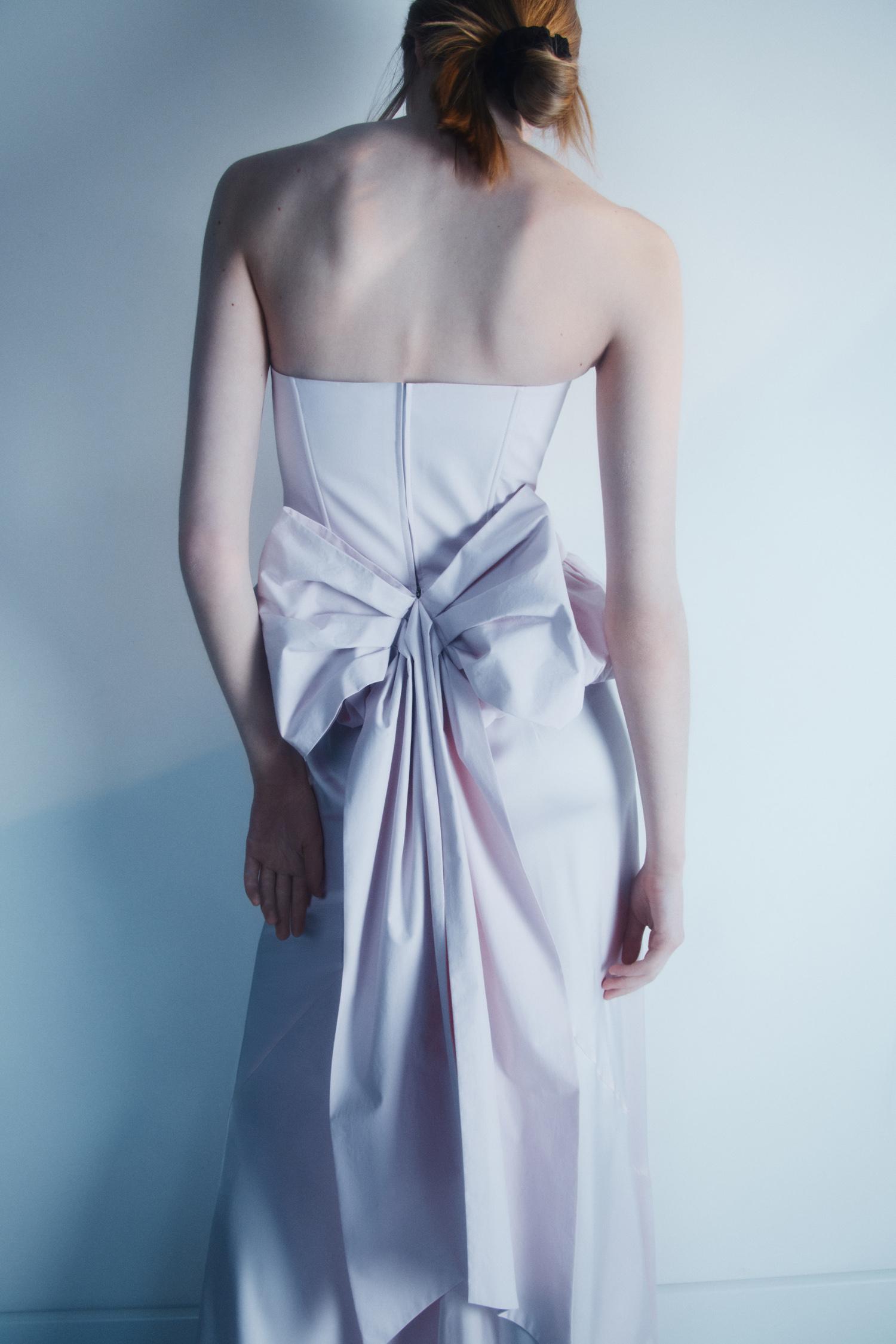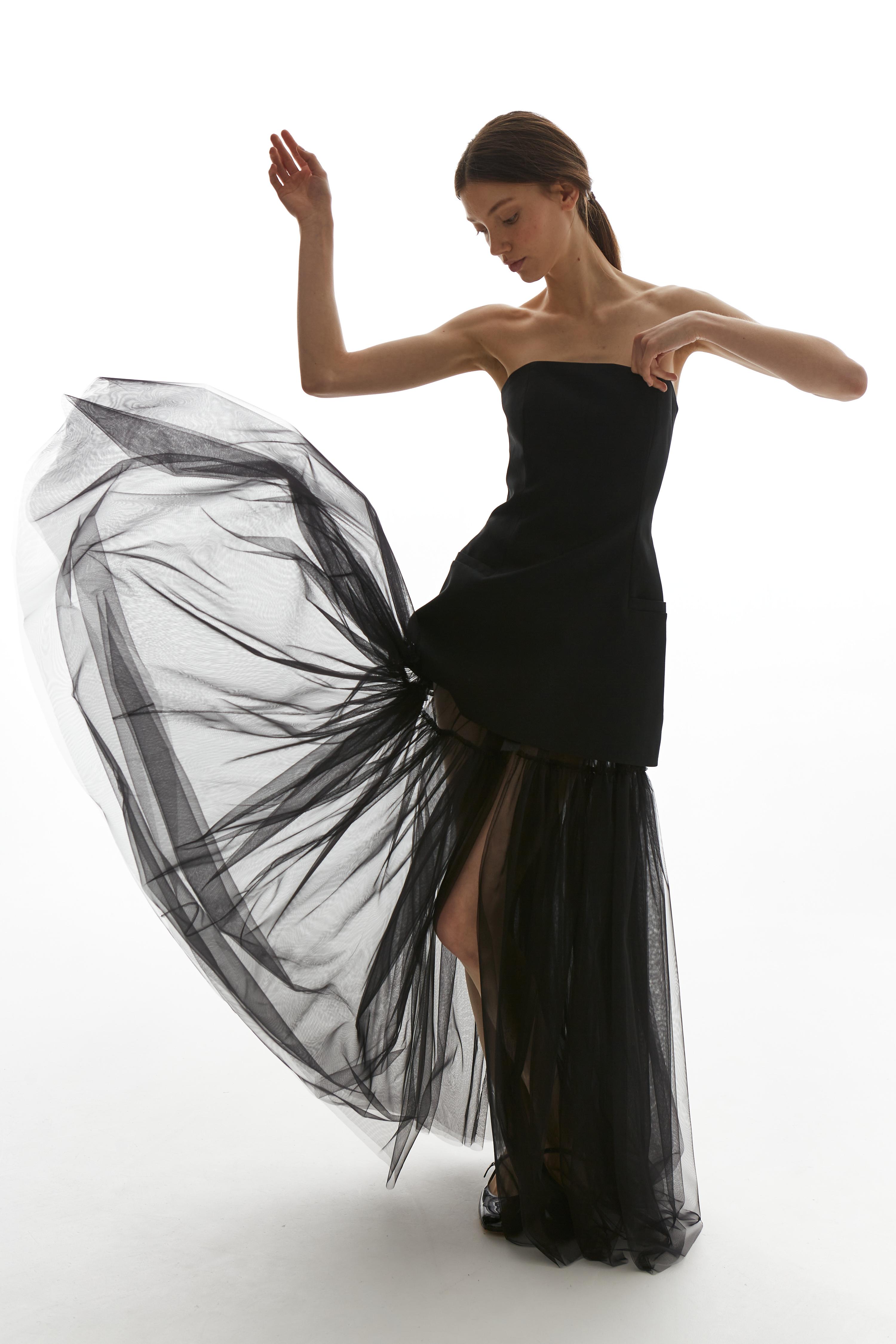 Звезды Party Collection — воздушная накидка-облако и топ с опущенными плечами, напоминающий гортензию. Для любителей классики представлены более лаконичные изделия: двубортный костюм с акцентными атласными лацканами, черное платье миди с вырезом халтер, прямые брюки, жилет и топ-бандо. Свое отражение в коллекции нашли и другие тренды сезона — полупрозрачные ткани, корсеты, юбки макси и банты. Основные цвета капсулы: черный, белый, голубой и нежно-розовый. Завершат вечерний образ аксессуары и обувь. В коллекцию вошли чокеры из бархата и с цветами, жемчужные ожерелья, серебристые босоножки с тонкими ремешками и атласные балетки.
