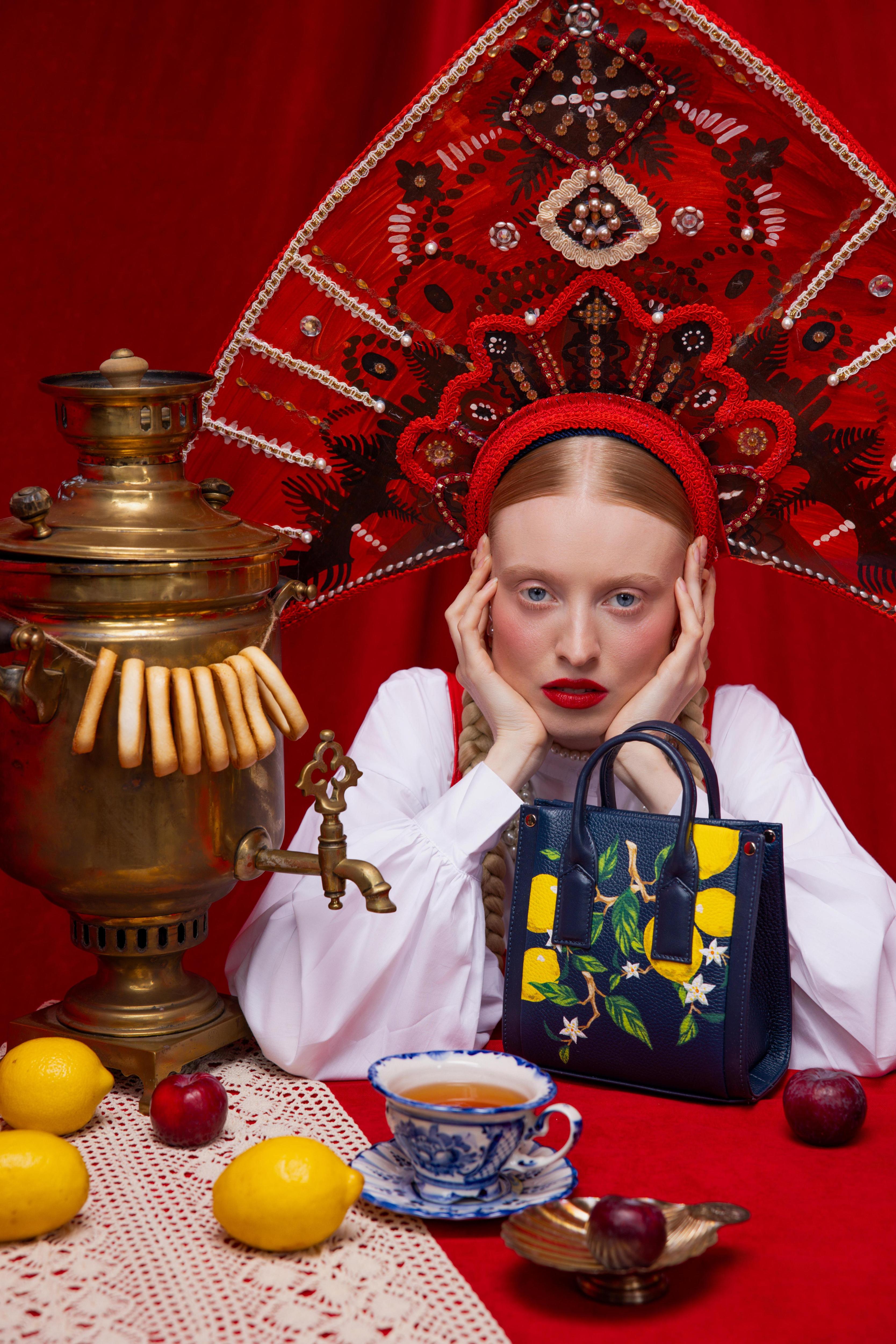 Российский бренд «Верфь» и Гжельский фарфоровый завод выпустили совместную коллекцию аксессуаров из натуральной кожи, расписанных вручную. Сумки с лимонами Гуляева, с брусникой Косихиной или с классическими узорами гжели Антроповой несут в себе частичку русской культуры и наследия. Уникальность изделия подчеркивается порядковым номером, аккуратно выведенным на каждой сумке.