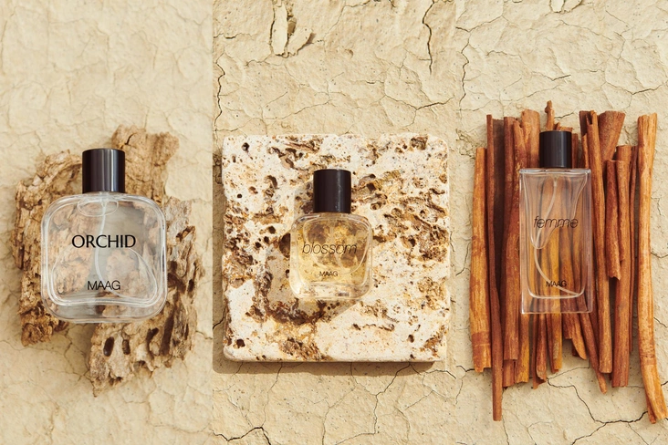 В новом сезоне MAAG представляет линию ароматов. Для женщин представлено 15 композиций. Среди особенных сочетаний — ноты розы и ландыша, смешанные с древеснофруктовыми оттенками; искристый мандарин в сочетании с бодрящим бергамотом и усиленный нотами фрезии; мускусные аккорды с нотами цветка лотоса и пиона. Среди восточных сочетаний — оттенки груши, туберозы и бобов тонка, чарующая композиция с нотами сладкого апельсина, окутанного карамелью и ванилью. Для лета бренд акцентирует внимание на ароматах с нотами белого чая и древесины кедра с освежающим яблоком; нежной магнолии, белой лилии с оттенками теплой ванили и сладкого миндаля.