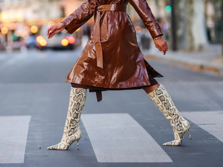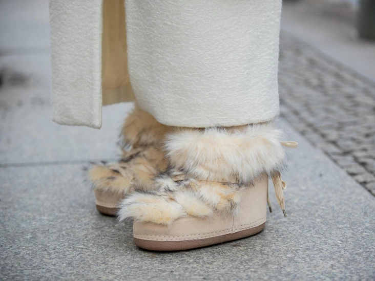 Мех на обуви — непостоянная деталь в моде: она из сезона в с сезон то в тренде, то покидает актуальные тенденции. Сейчас подобные варианты станут индикатором устаревшего зимнего образа. Вместо подобных ботинок и сапог присмотритесь к кожаным сапогам до колена. На них нет излишнего декора, что дает возможность сфокусировать внимание на более интересных элементах гардероба.