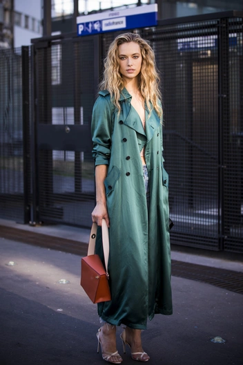 В качестве материалов отдавайте предпочтение коже или плотному хлопку, что всегда выглядят эффектно и модно (читайте также: Кожаные тренчи: как носить самые модные пальто сезона). Не бойтесь также работать с фактурами: например, строгий тренч можно всегда разбавить атласной юбкой и струящимися брюками.