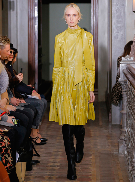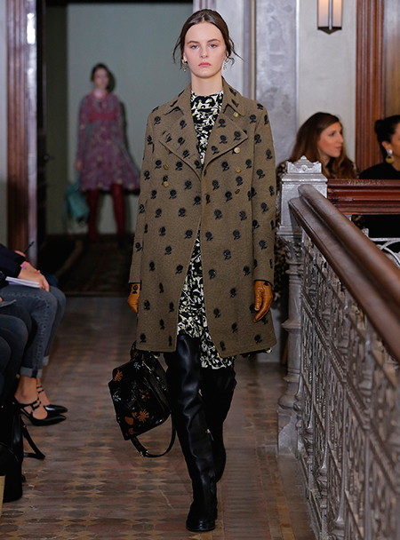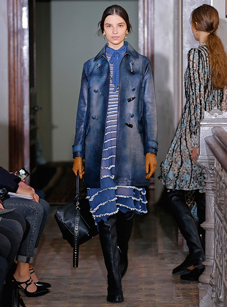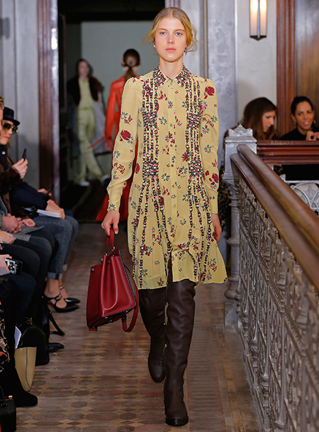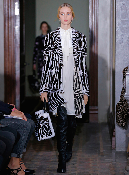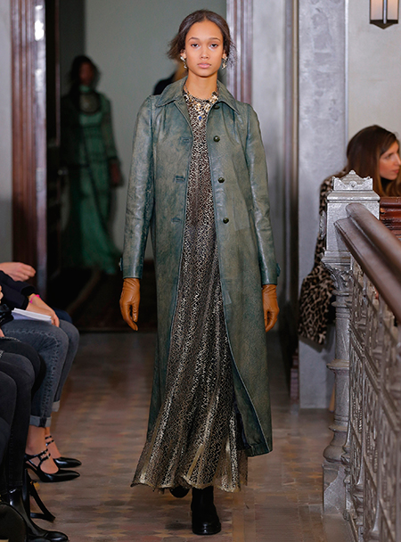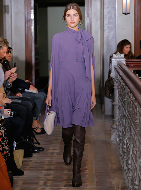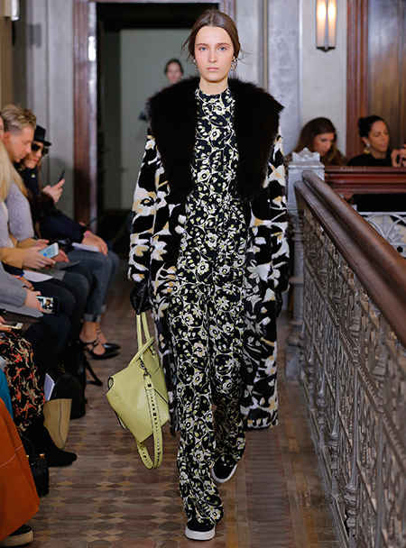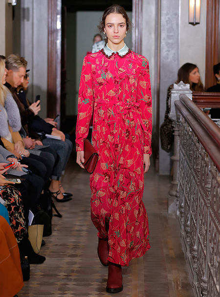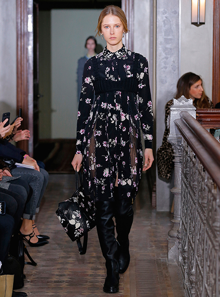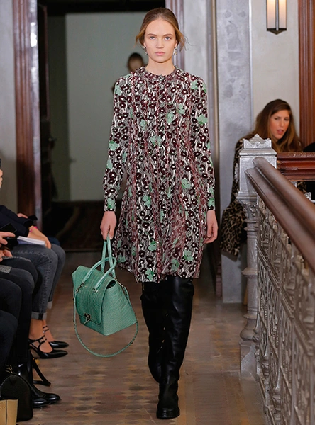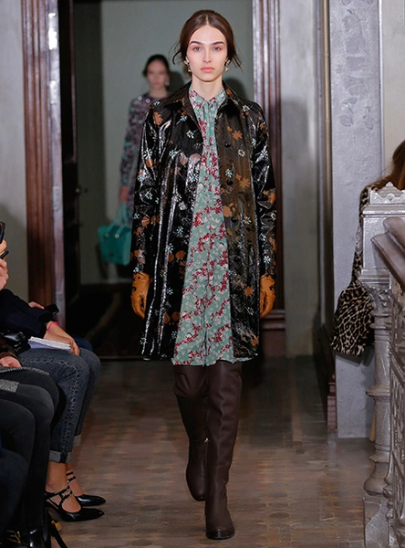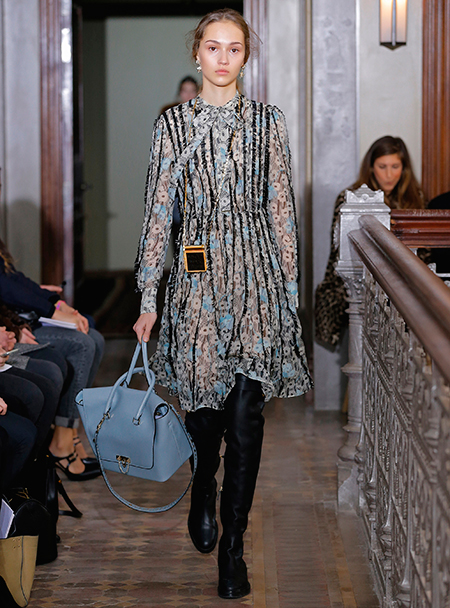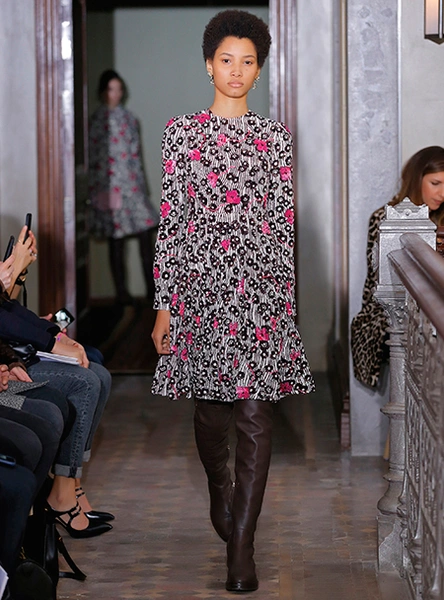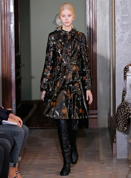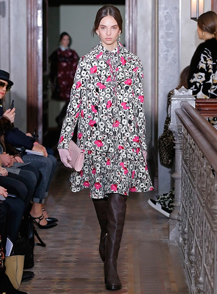Представленная коллекция – невероятно женственная и чувственная, как все, что в последние годы выходит в доме Valentino. Пьерпаоло Пиччоли не делает революцию, не предлагает перезагрузку, но, напротив, очень деликатно обходится со своими поклонницами, предлагая им, с одной стороны, ожидаемые по стилистике вещи, с другой, играя на нюансах, цвете и фактурах. Осенняя коллекция Valentino – это то, что хочется носить и с чем хочется экспериментировать, оставаясь в рамках своей собственной концепции красоты и женственности. К примеру, платье струящегося А-образного силуэта можно надеть, подчеркнув талию ремешком – выше, ниже, или оставить как есть, всякий раз создавая новый образ. Хотите еще – накиньте на плечи меховое пальто с принтом (тренд, который держится уже год и не собирается уходить следующей осенью уж точно). Идея коллекции – индивидуальность, неповторимость, которых легко добиться комбинируя, добавляя детали и аксессуары.