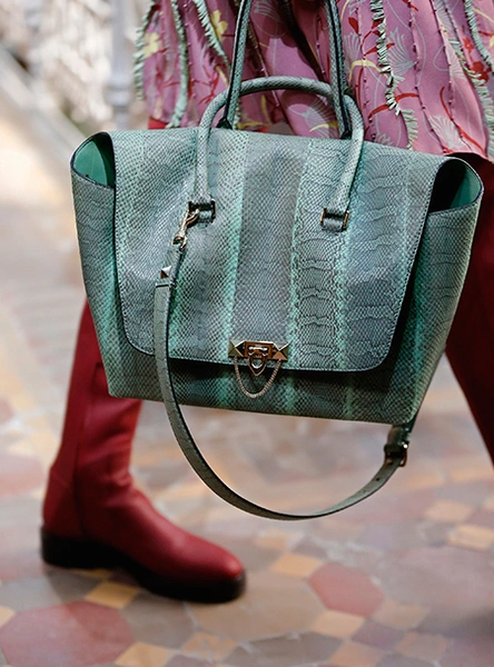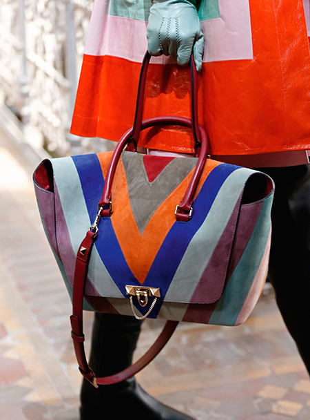 Об аксессуарах хочется говорить отдельно. Сумки Valentino – известный must среди модниц всего мира. И в новой коллекции снова есть, как минимум, один экземпляр, который станет новой it-bag. На шоу ее не сложно было заметить: выполненная в разных цветах и фактурах, включая трендовый color-block, и чем-то напоминающая рюкзак, только носимый (опять же, по-модному) в руке, она не могла не обратить на себя внимание.