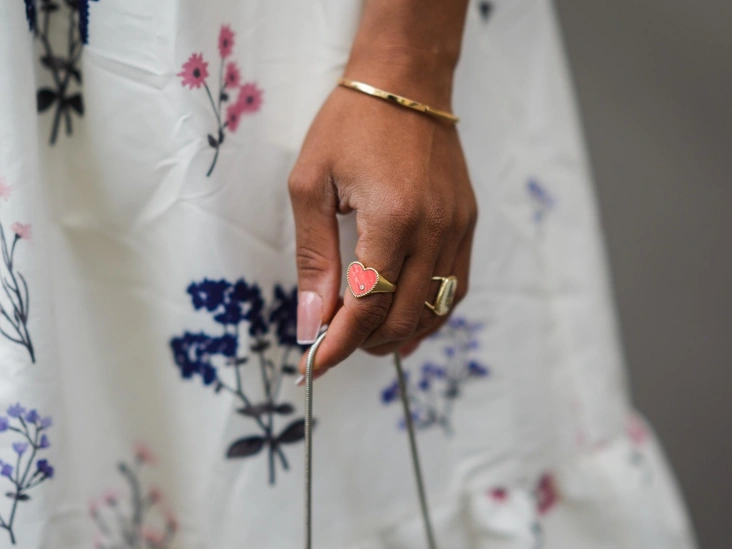 Тренд на двухтысячные принес нам не только укороченные дубленки и джинсы на низкой талии, но и детские аксессуары, которые мы начали плести во время коронавирусной пандемии. Это были браслеты из мулине, яркие бусы из бисера и крупные кольца из полимерной глины. Однако от этой эстетики нам всем нужно передохнуть и вновь выбрать минималистичные серебряные или золотые украшения.