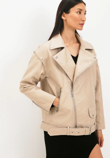 Кожанки никогда не выйдут из моды, а вот дизайн на них — вполне себе. Устаревшими в 2023 году будут те куртки, что разрисованы яркими и безумными принтами: от надписей до мультяшных героев. Откажитесь от детского декора и отдайте предпочтение стильной и взрослой верхней одежде (читайте также: 5 главных ошибок при выборе кожаной куртки: от цвета до фасона). Выберите однотонную кожаную куртку, которую с любовью носят Джиджи Хадид и Хейли Бибер, и присмотритесь к винтажным оверсайз моделям с потертостями. Их можно стилизовать с любыми элементами гардероба: женственным платьем или дерзким мини с разрезами.