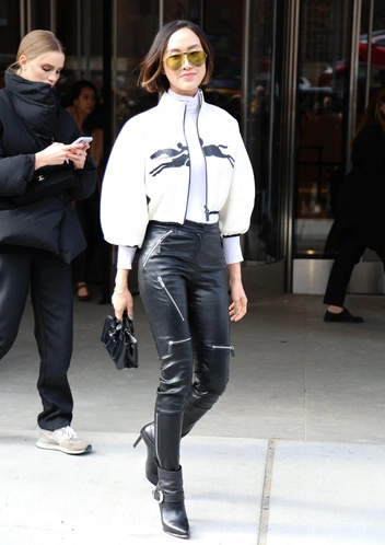 Молодящаяся тётенька в 45, а именно так выглядит женщина в кроп-топе в этом возрасте, вместо восхищения вызывает желание посплетничать. Даже, если это Деми Мур. Выбирайте статусные вещи, желательно из плотной ткани. А если хочется выглядеть сексуально, платья-комбинации из шелка вам в помощь. И они отлично сочетаются с пиджаком-оверсайз мужского кроя.