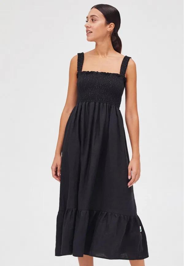 Идеальная инвестиция на многие годы вперед, а также важный элемент базового гардероба на лето. Поэтому если вы любите продумывать все наперед, стоит иметь в своем гардеробе хлопковый или льняной сарафан. Такой вариант можно будет носить не только на торжества, но и на работу, на прогулку или на свидание. Комбинируйте с цветными мюлями, ярким шелковым платком и соломенной сумкой. Соберите волосы и завершите образ очками «cat eye» в пластиковой оправе.