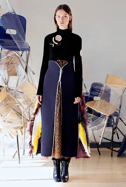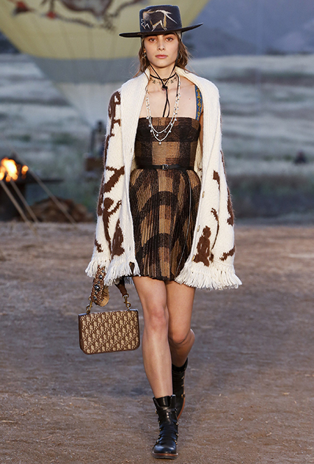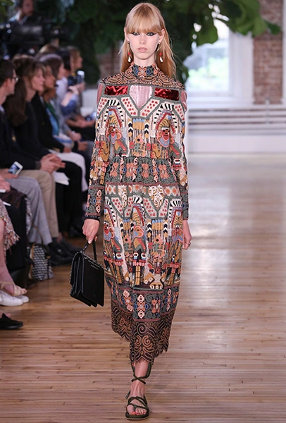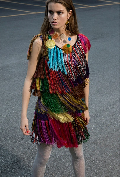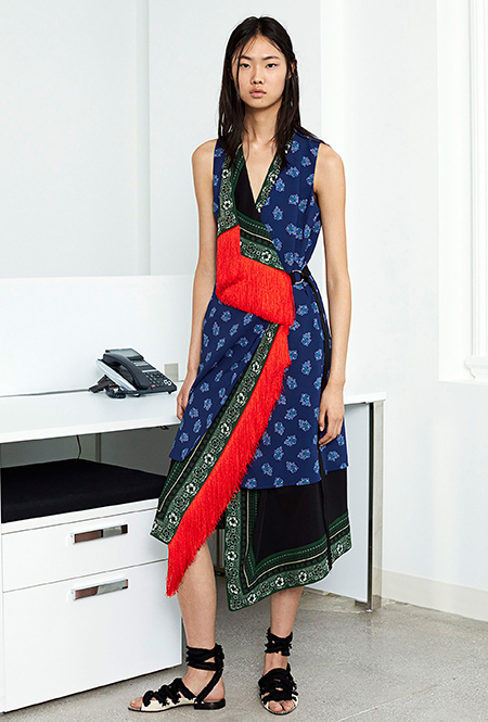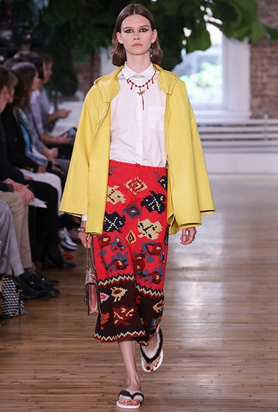 Бахрома, от безобидной и декоративной, появившейся на шоу у каждого второго дизайнера, до сумасшедшей и мало применимой, как у Emilio Pucci, стала одним из главных трендов уходящего сезона. В круизных коллекциях она не сдает позиций, появляясь в двух стилистиках — эпохи джаза и эпоха ковбоев. Отсюда совершенно разные формы, фактуры, объем и «способ применения». Самые яркие примеры у Marc Jacobs, Chloé и Dior. Мой любимый образ — из лукбука бренда Ellery, дизайнеры которого, пожалуй, единственные обыграли ее в восточном стиле.