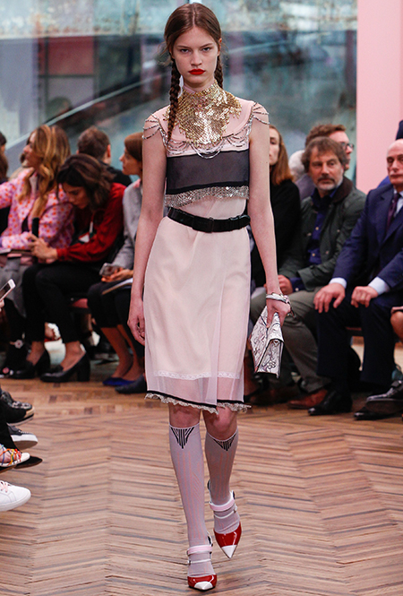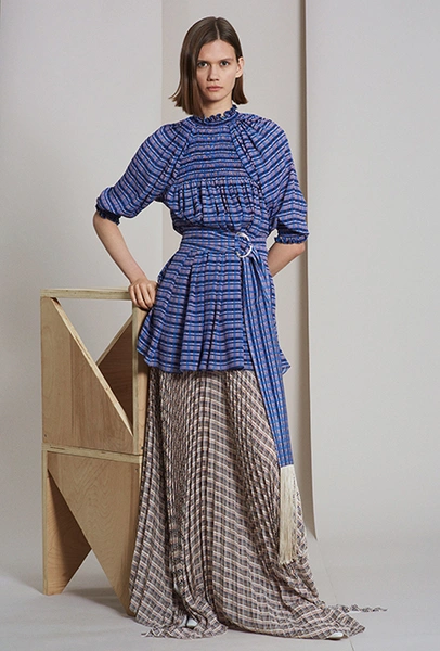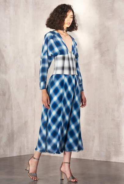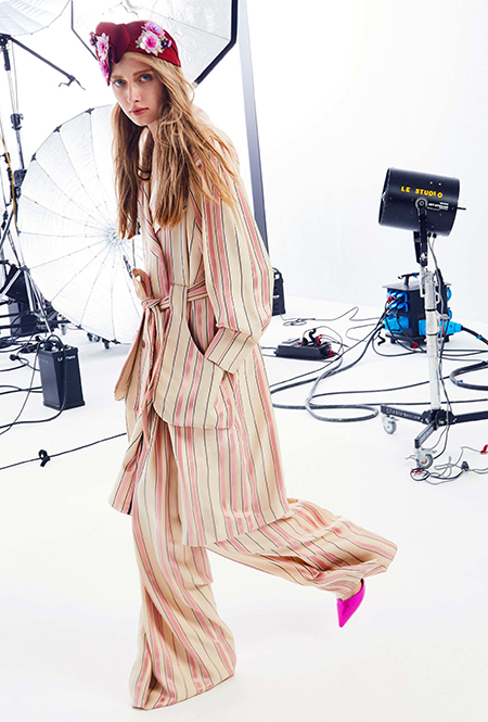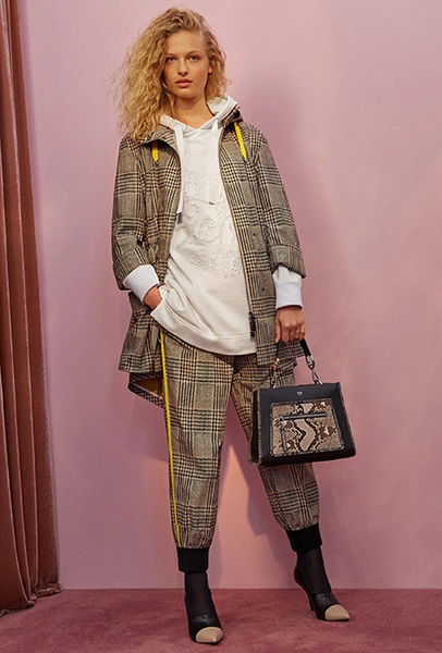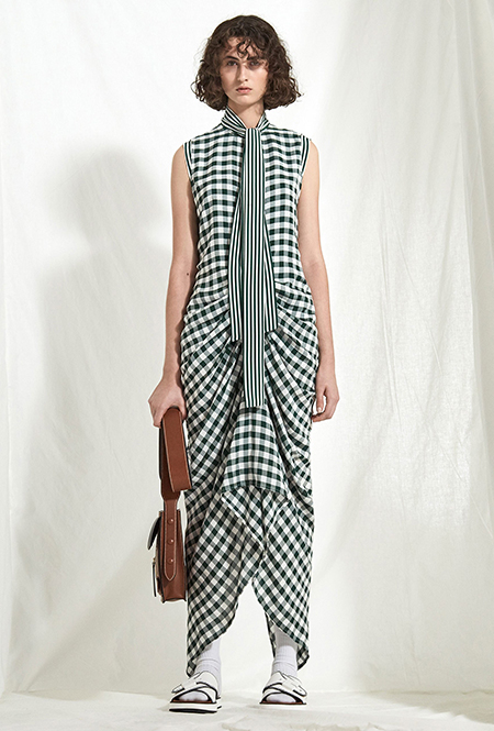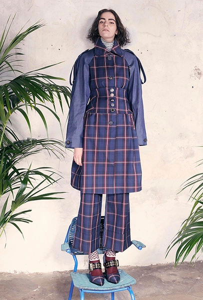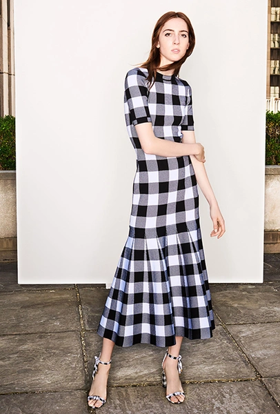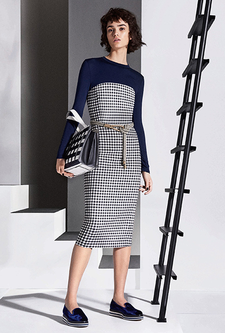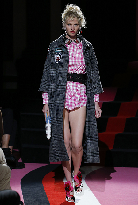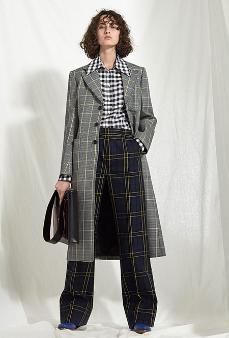 Клетка в круизных коллекциях тоже не сдает позиций. Если осенью все охотились за суперобъемными жакетами, располосованными «принцем Уэльским», то resort дает безграничный выбор: в ходу будет не только классическая «шотландка», но и виши, традиционно напоминающая о лете. Самый невероятный образ получился у Миуччи Прады для Miu Miu — однобортное пальто с рубашкой, сочетающий два вида разной клетки.
