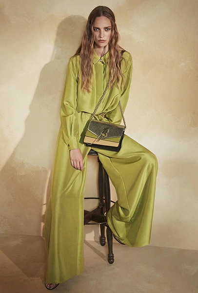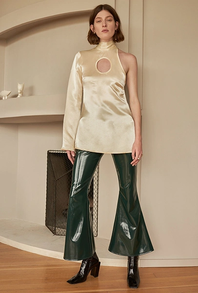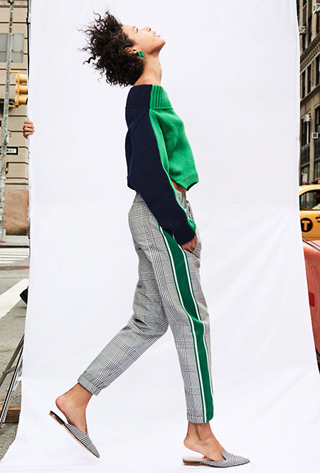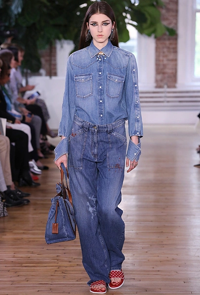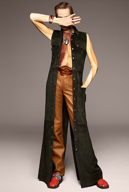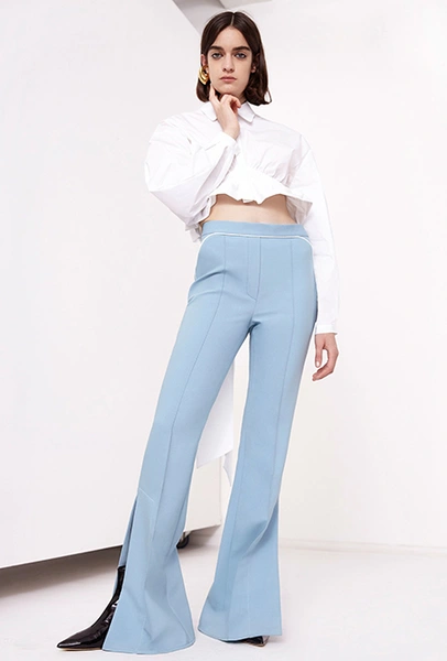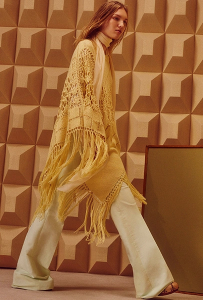 То же самое можно сказать о брюках-клеш. Правда, тут дизайнеры зашли еще дальше, предложив нам категоричный выбор: или укороченные, или ультрадлинные. Первые сочетаются с лодочками, чтобы компенсировать диспропорцию, вторые — исключительно с обувью на плоской подошве.