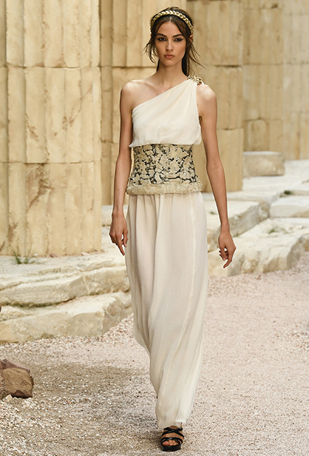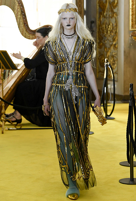 Как ни крути, каждая женщина — античная богиня. В нее верят Карл Лагерфельд в Chanel, Алессандро Микеле в Gucci и Николя Жескьер в Louis Vuitton. В последнем восхищает сочетание одежды не с сандалиями, а c казаками, которые даже так выглядят стильно и органично. В пару к ним у Gucci отыщутся золотые венки, которые можно чередовать с браслетами Chanel.