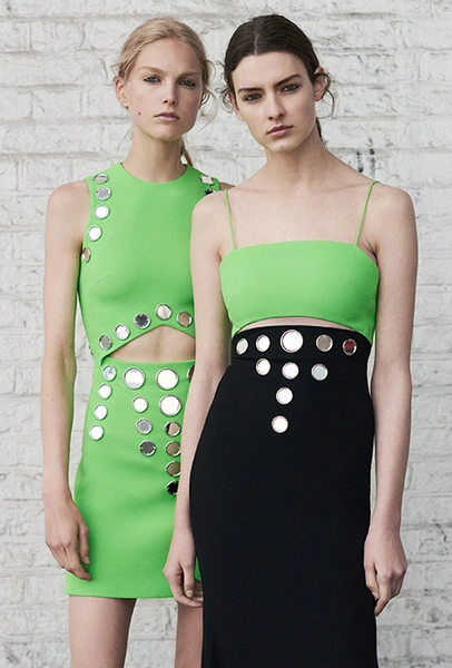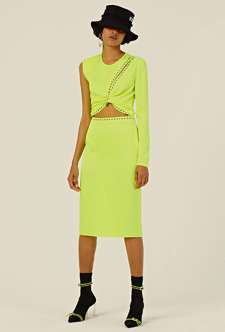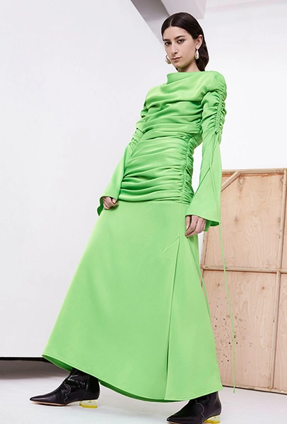 Эксперименты с этими цветами — не самое безопасное модное путешествие, Из всего увиденного, я бы, пожалуй, решилась на шелковое платье Protagonist, но только после пары бокалов вина.