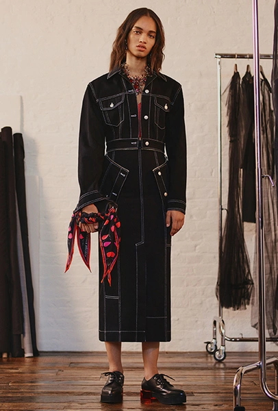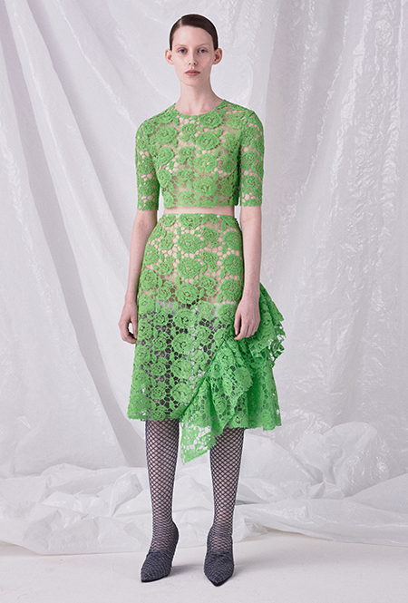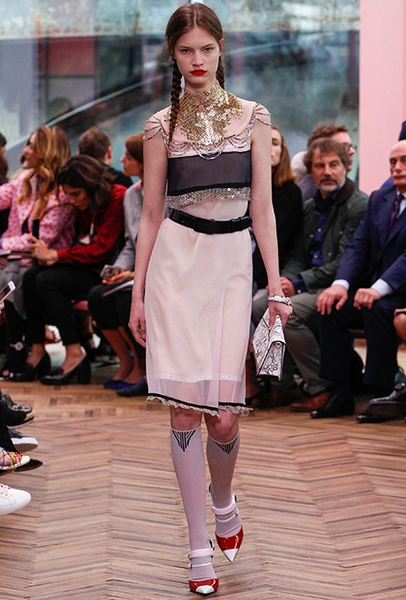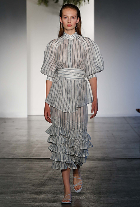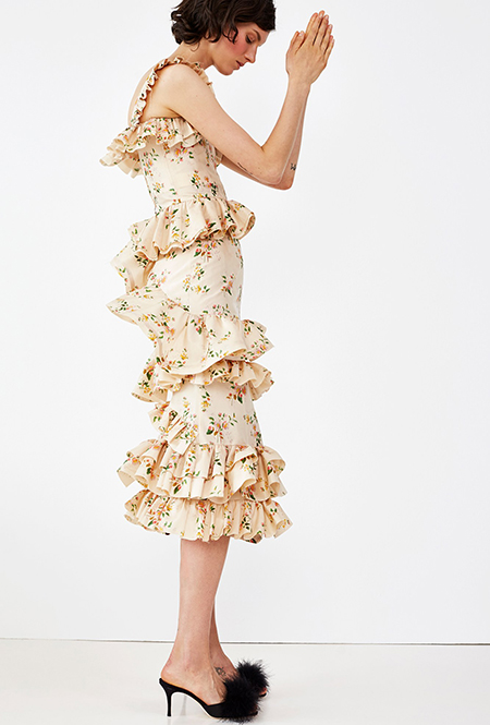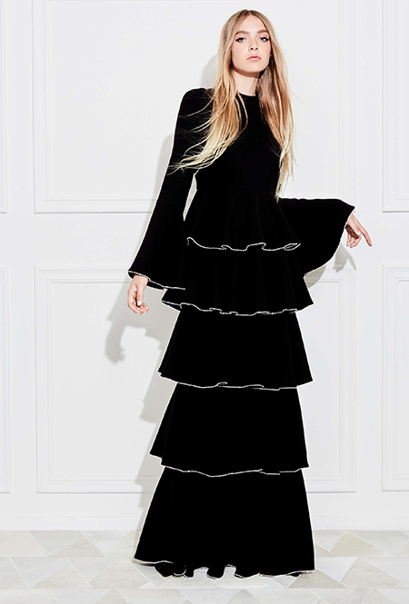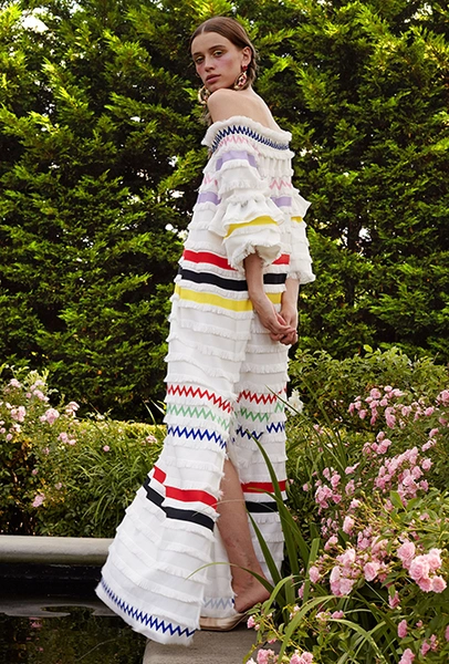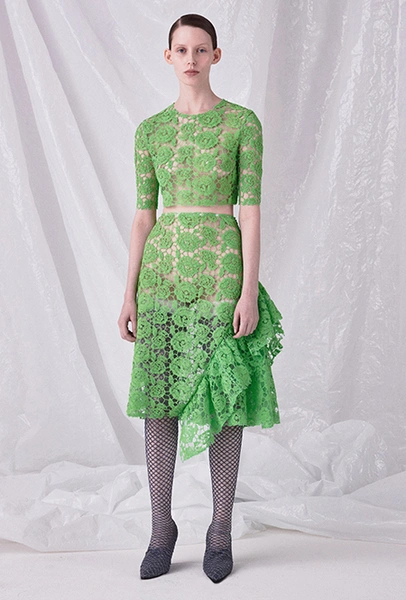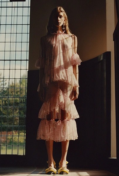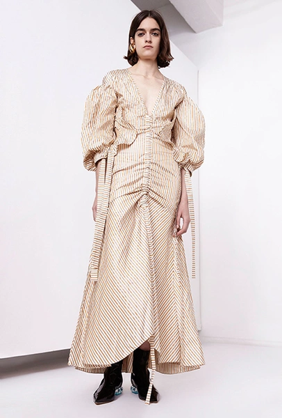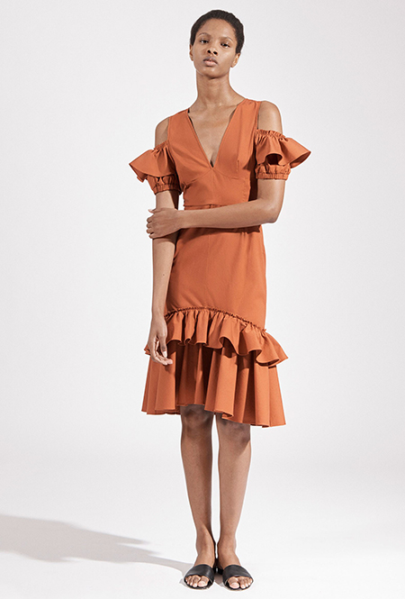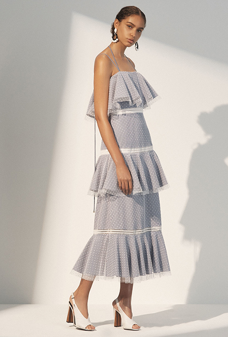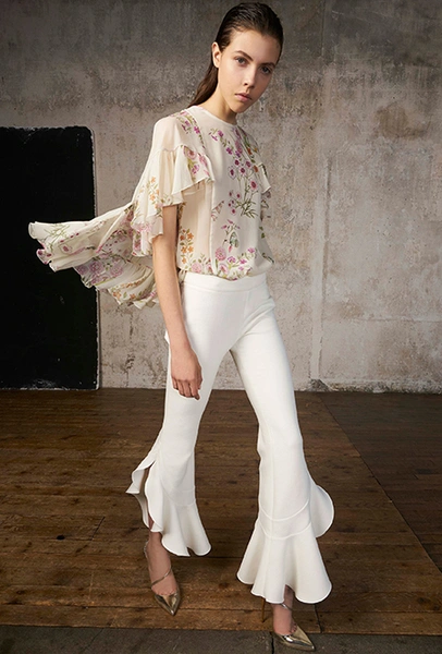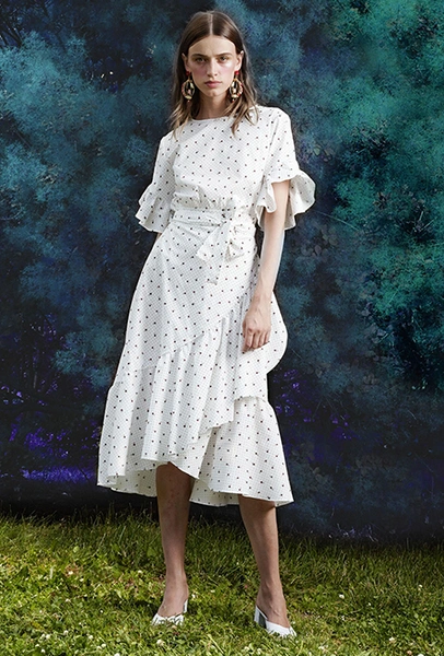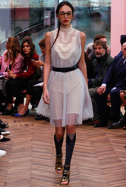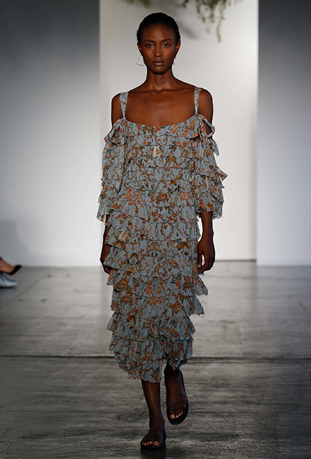 Но если бахрома может быть очень разной, то оборки, тоже перекочевавшие из FW 17-18, — удел романтиков. Многослойные, воздушные, широкие и узкие, украшающие исключительно платья, они выдают поклонниц знойной Испании или британской глуши. Самые «зефирные» получились у Кристофера Кейна, а недавние дебютанты Brock Collection создали одновременно хрупкий и очень сексуальный образ.
