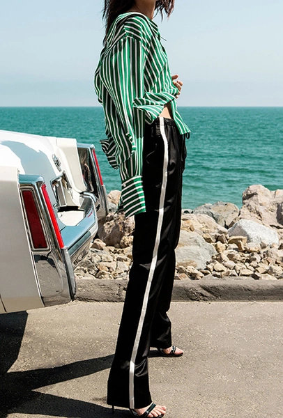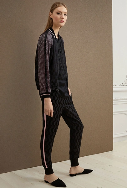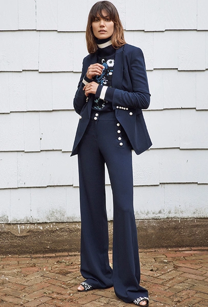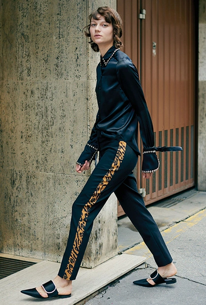 Но самым сильным брючным трендом становится возвращение лампасов. И здесь тоже встает проблема выбора: первая половина моделей «выросла» из спортивных брюк, вторая — из мужских костюмов со смокингом.