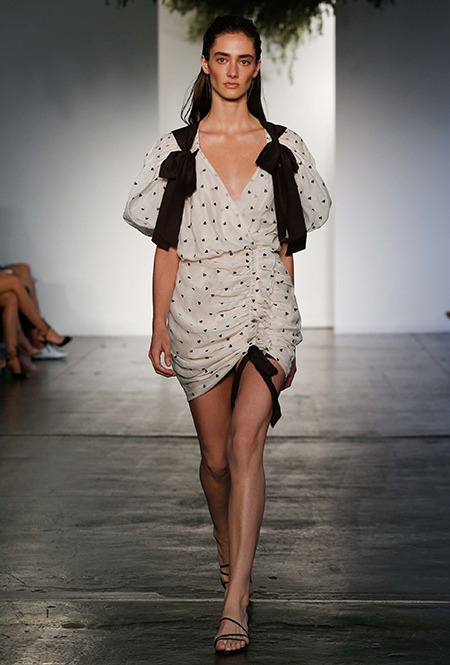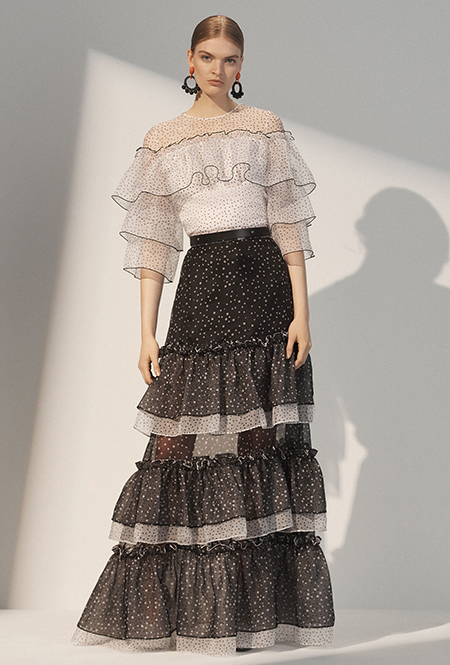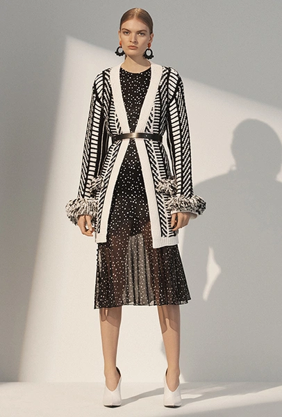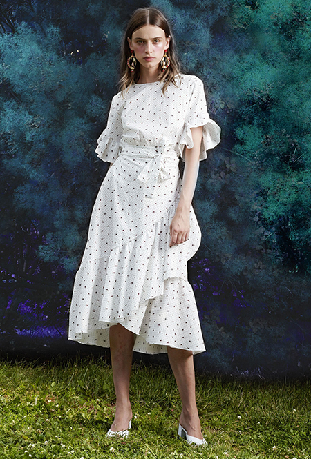 Горох в предыдущих сезонах был составной частью наряда в викторианском стиле, иногда цитируя классику кино, как «Моя прекрасная леди» (My Fair Lady). Этой зимой образы стали легче. Карл Лагерфельд в знаменитой «греческой» коллекции одевает моделей в длинные халаты, усыпанные горошинами, но я с первого взгляда влюбилась в черно-белое платье Zimmermann с кулисками, которые, кстати, станут одной из важнейших летних тенденций.