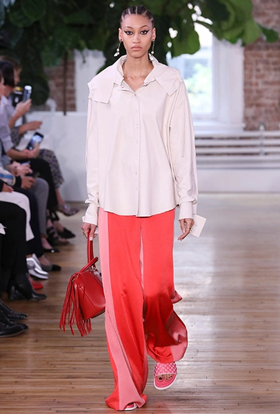 Имитация ручной вязки или плетения — проверенный способ придать вещи аутентичность и элитарность. В моем восприятии моды эта тенденция не находит отклика, что, конечно, не делает ее менее привлекательной. Плетение в круизных коллекциях я нашла у Missoni, вторят которому Sonia Rykiel, Balmain, Chloé и Chanel. Самым выигрышным мне кажется пример у Derek Lam с белыми брюками, но, возможно, это потому, что он очень напоминает выход у Céline в коллекции FW 17-18.