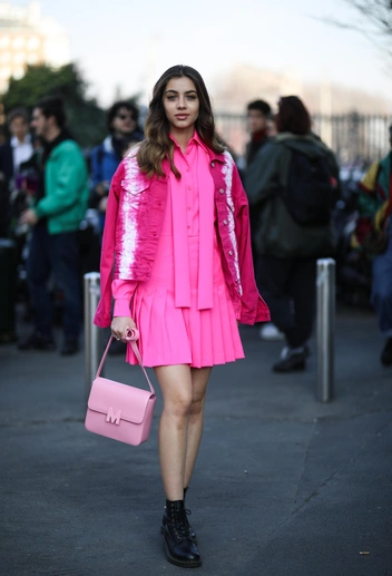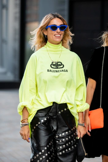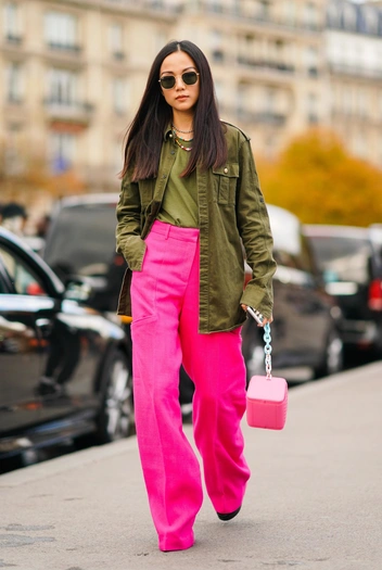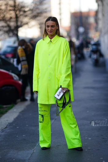 Если говорить о малых дозах неона, то их включают в свои коллекции даже такие приверженцы чувственности и женственности, как Valentino. То есть неоновые оттенки при желании можно интегрировать практически в любой гардероб. Теперь разберем самые безопасные варианты. Например, объемный деловой костюм, выполненный в спокойных оттенках песочного, земляного или любого из монохромных цветов, которые отлично освежат неоновый кроп-топ или футболку.