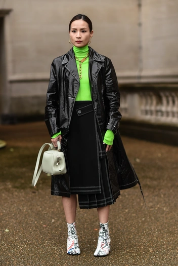 Интегрируются они в дневные и вечерние образы без особых сложностей. Если в одежде присутствует еще один (а может и более) яркий цвет, нужно отслеживать, чтобы насыщенность этих цветов была примерно на одном уровне. К самым актуальным сочетаниям неоновых оттенков можно отнести сочетания зеленого и фуксии, зеленого и голубого и зеленого и лилового (читайте также: Как носить ярко-зеленый цвет — самый модный в этом сезоне).