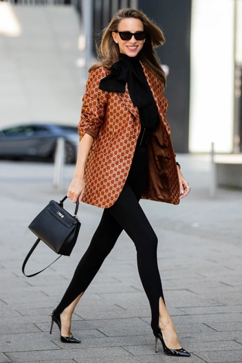 Леггинсы со штрипками — это более стильный и универсальный «собрат» базовых черных лосин. Сейчас леггинсы — не только одежда для спорта, но и полноценная замена брюкам на каждый день. И эта крошечная и едва заметная деталь на стопе, на самом деле, имеет решающее значение, которая способна сделать наряд по-настоящему ультрамодным. А такие простые и базовые вещи, как оверсайз-блейзеры и свободные свитера, могут превратить облегающие брюки в стильный завершенный образ.
