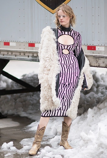 В случае с трендом на мех натуральных оттенков все с точностью до наоборот. Чтобы образ не получился скучным, выбирайте ему в пару броские вещи контрастных расцветок и противоположных фактур. В ход идут принты, кружева, полоска, клетка и яркие цвета. Расставляйте на себе акценты, как художники на своих полотнах, не забывая о гармонии и балансе.