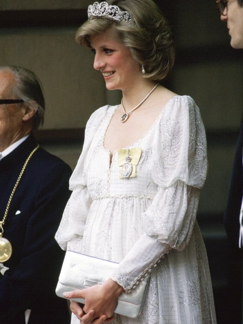 Пожалуй, лучший вечерний выход принцессы Уэльской за время обеих беременностей пришелся на время ожидания принца Гарри. Для вечера в Королевской академии искусств Диана выбрала белое платье Bellville Sassoon с ампирной линией талии и рукавами в романтическом ключе. Наряд дополнил орден, который надлежит носить на ленте, бриллиантовое ожерелье, жемчужные серьги, а также фамильная тиара Спенсеров, с которой принцесса не хотела расставаться даже после свадьбы с принцем — молодой женщине уж очень хотелось подчеркнуть свою независимость.