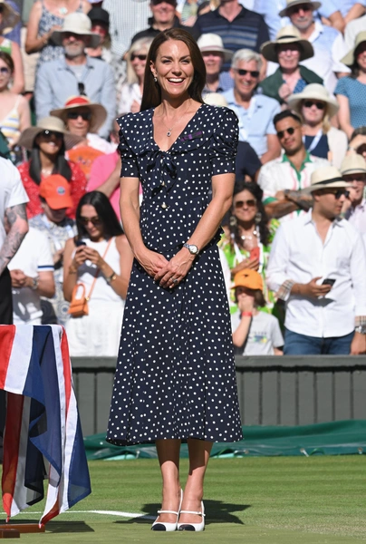В эпоху леди Дианы за платья с принтом «полька дот» отвечала именно она. У принцессы в гардеробе были разные вариации — с черным горохом на белом фоне, с белым на черном, а также разноцветные. Теперь эстафетная палочка перешла в руки новой принцессы Уэльской — и есть ощущение, что Кейт носит горох по своему желанию, а не для того, чтобы ассоциироваться с легендарной свекровью.