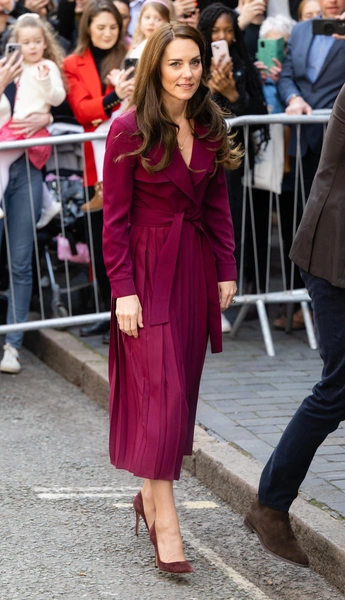 Если вы думаете, что мы попрощались с вариациями бордового оттенка осенью 2024-го — то это не так. По прогнозам Pinterest и нашим наблюдениям за Неделями моды бургунди живее всех живых — и у Кейт Миддлтон есть много образов для вдохновения в этом цвете. Кружево для вечернего выхода, или платье-пальто для встречи с эмиром Катара — Уэльская явно умеет в тренды (читайте также: Прогноз Pinterest: какие цвета будут в тренде в 2025 году (и как их носить)).