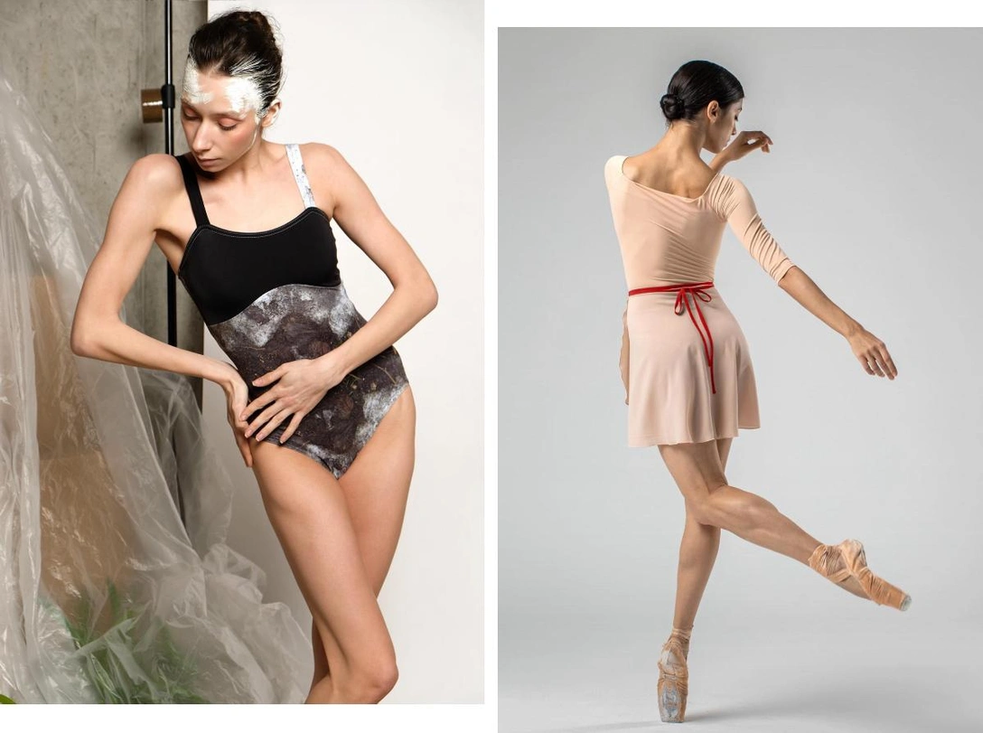 Ненатуральные ткани, как полиамид, полиэстер и эластан (лайкра), на мой взгляд, кардинально изменили современную балетную одежду. Появились новые цвета, невоспроизводимые в натуральных тканях. Появилось больше разнообразия в видах обработки и узлах. Выбор купальников и юбок сильно вырос. Вторая волна, на мой взгляд, связана с появлением небольших брендов, которые были готовы экспериментировать и пробовать то, что недоступно большим компаниям из-за доли ручного труда в изделии (ручное окрашивание или сложные лекала, изготовление которых возможны только в ателье или в рамках ручной проверки партии) или боязни не продать большую партию с сильно непредсказуемым дизайном.